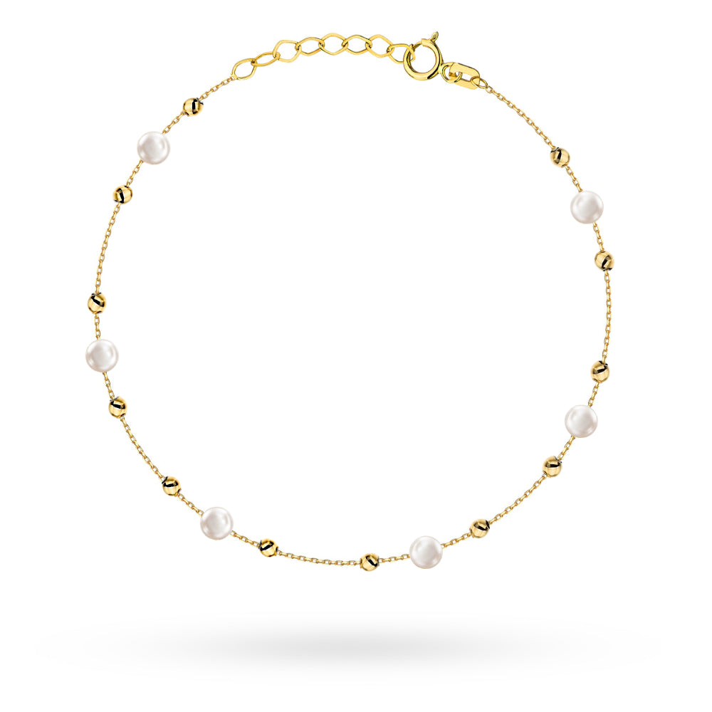 Această brățară din aur 14K este mai mult decât un accesoriu; este o declarație de stil. Combinația perfectă dintre mărgelele netede și perlele delicate creează o armonie vizuală, subliniind feminitatea și eleganța. Fiecare perlă este o promisiune a rafinamentului, iar aurul strălucitor completează perfect această operă de artă purtabilă. Este cadoul perfect pentru o persoană dragă sau o răsfăț pentru tine, un simbol al frumuseții durabile.