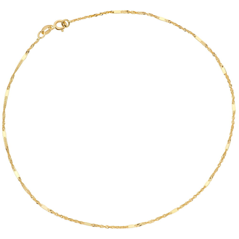 Răsfățați-vă cu eleganța atemporală a acestei brățări din aur galben de 14K (585), meticulos lucrată în modelul rafinat Singapore. O plăcuță delicată adaugă o notă subtilă de personalitate, transformând această bijuterie într-o declarație de stil discret. Perfectă pentru a fi purtată zilnic sau pentru a completa o ținută elegantă de seară, această brățară vă va încânta cu strălucirea sa caldă și designul său versatil.
