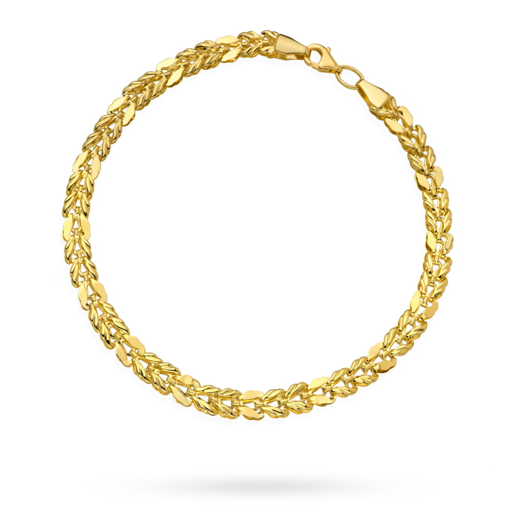 Descoperă eleganța atemporală a acestei brățări din aur, un simbol al rafinamentului și stilului personal. Designul său împletit, meticulos lucrat, adaugă o textură bogată și un farmec aparte, transformând-o într-o piesă centrală pentru orice ținută.