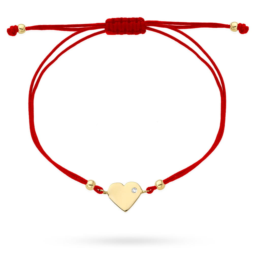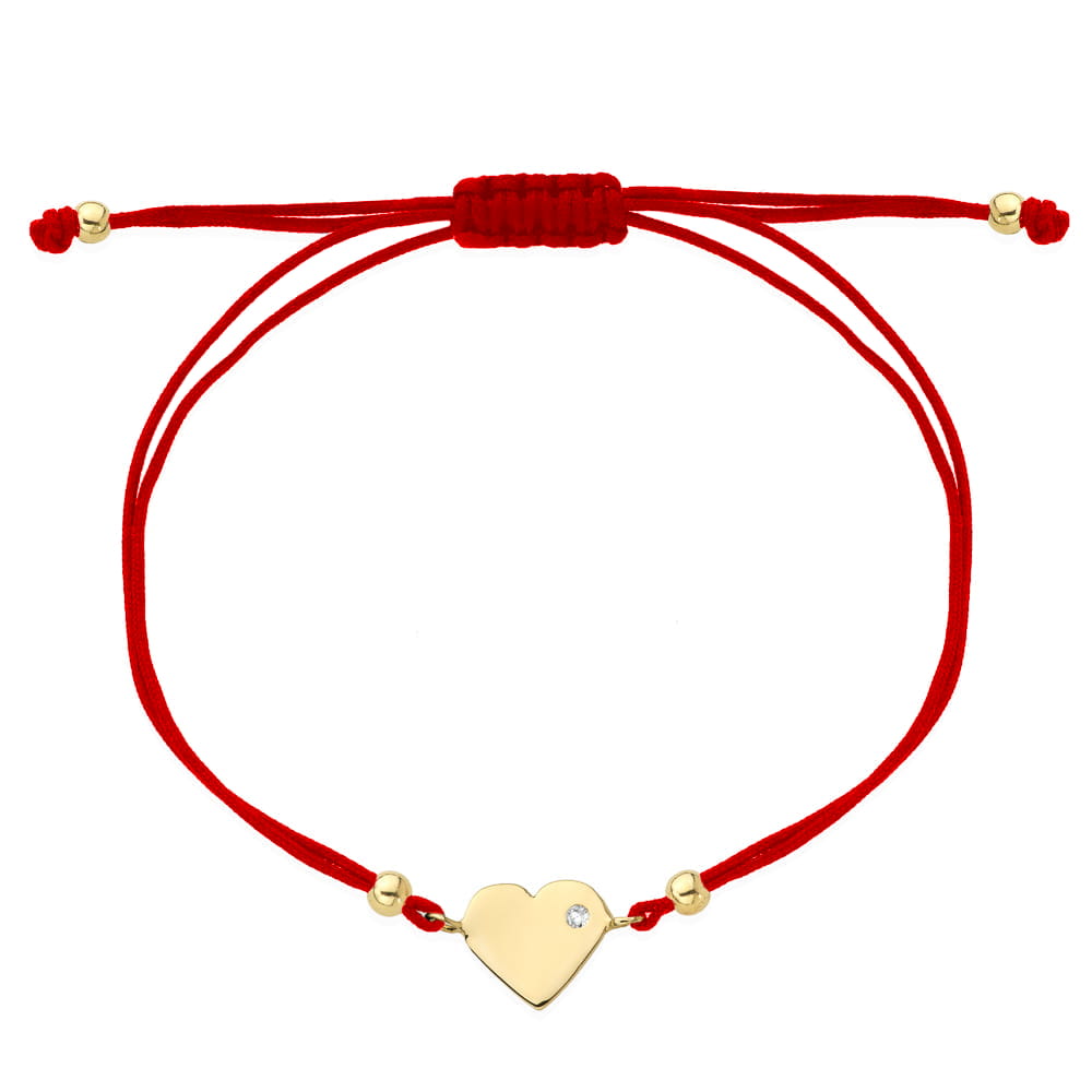 Brățară Inimă de Aur cu Zirconiu pe Snur Roșu - 14k