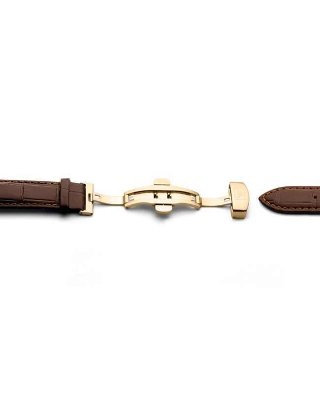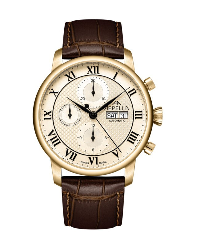 Ceas cronograf automat pentru bărbați de la Appella combină eleganța, designul clasic și măiestria elvețiană precisă. Carcasa solidă din oțel inoxidabil adăpostește renumitul mecanism Sellita SW500 Swiss Made, asigurând o precizie excelentă și o funcționare lină a tuturor funcțiilor. O curea din piele cu o cataramă fluture elegantă oferă confort la purtare și o potrivire perfectă pe încheietura mâinii, în timp ce finisajul său accentuează caracterul retro al întregului model. Cadranul este protejat de cristal de safir rezistent la zgârieturi cu un strat antireflex, asigurând o lizibilitate optimă chiar și în lumină puternică. Cifrele romane mari, combinate cu un șir de minute fin, conferă ceasului un aspect rafinat, clasic. Un afișaj de dată la ora trei și sub-cadranele cronograf îmbunătățesc funcționalitatea, permițând măsurarea precisă a timpului. Cu o rezistență la apă de 5 ATM, ceasul este protejat împotriva stropilor și a ploii ușoare, în timp ce spatele transparent al carcasei dezvăluie mecanismul intricat al mecanismului, adăugând o notă unică. Acesta este un ceas pentru bărbații care apreciază eleganța, calitatea elvețiană și stilul atemporal, cu un indiciu de farmec retro. La achiziționarea ceasului, veți primi: O garanție de 2 ani, O pungă originală, Un certificat de garanție original, O cutie originală.