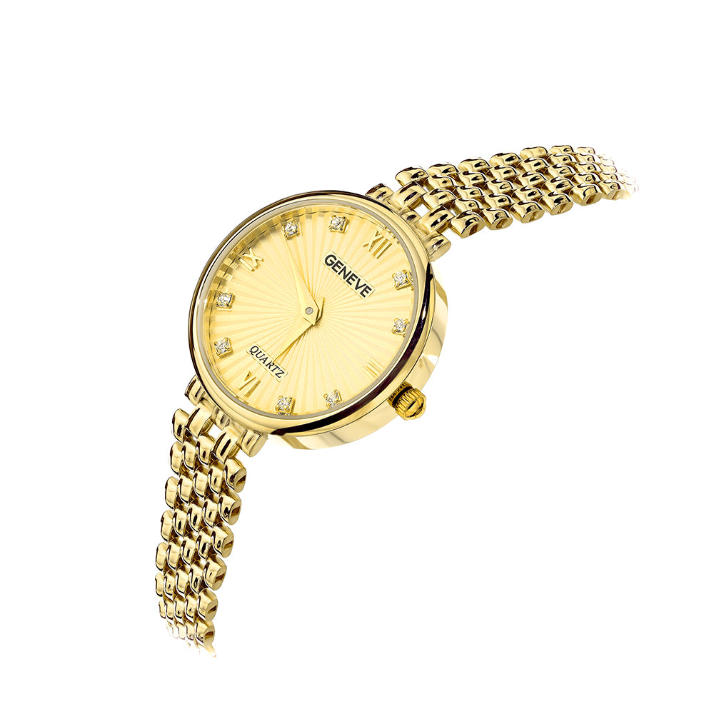 Acest ceas din aur este o alegere perfectă pentru a celebra momente speciale sau pentru a adăuga o notă de eleganță zilnică. Designul său cu cadran rotund și zirconii strălucitoare aduce un plus de rafinament și stil. Este un cadou ideal pentru o aniversare, o zi de naștere sau pur și simplu pentru a vă răsfăța pe dumneavoastră sau pe cei dragi.
