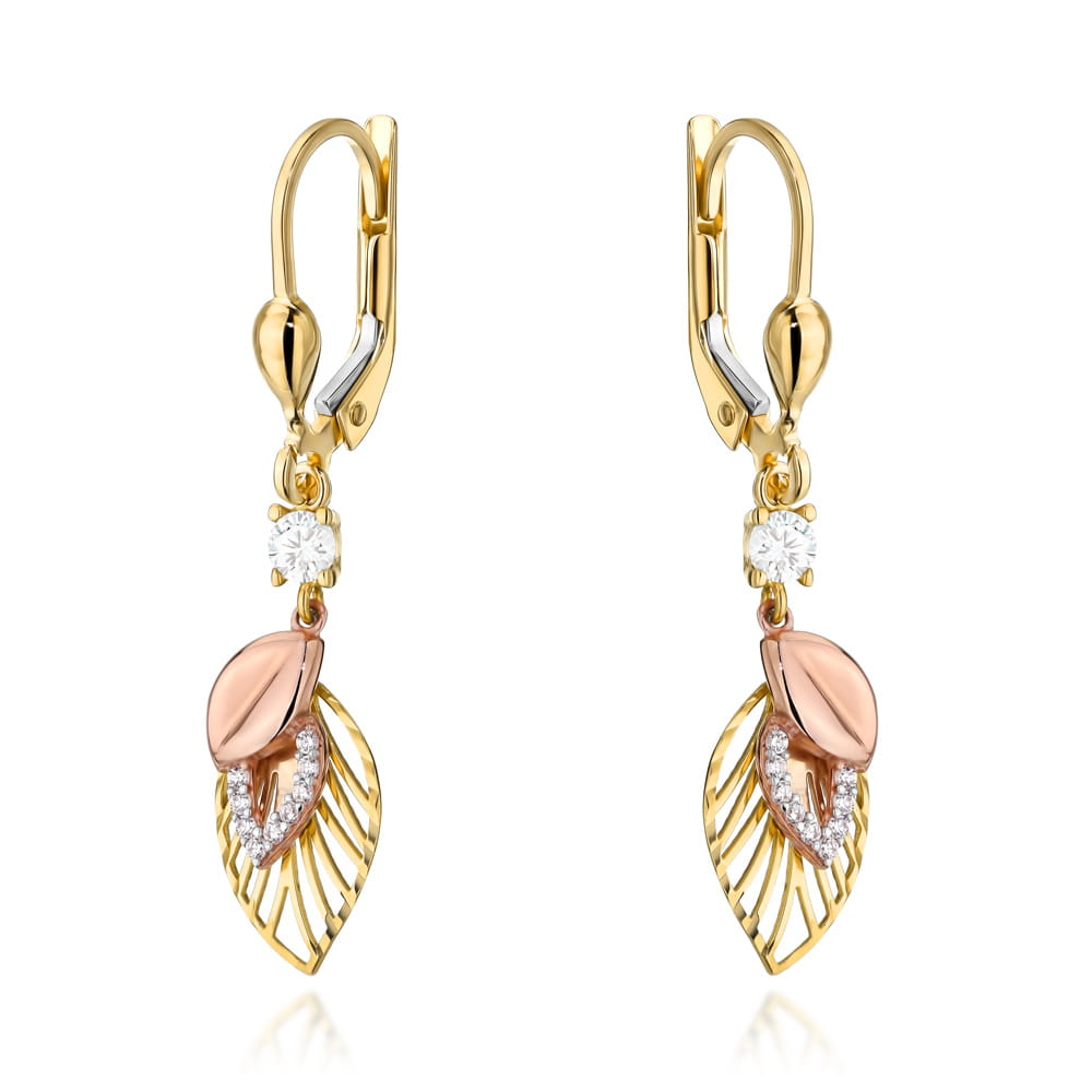Cercei Aur 14K cu Frunze și Zirconii Albe: Accesorii strălucitoare inspirate din natură