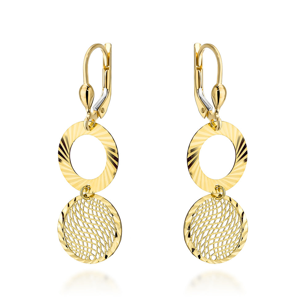 Cercei Aur 14K Cu Inel Diamantat și Cerc Ajourat