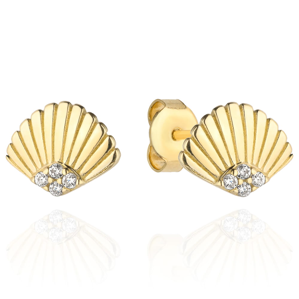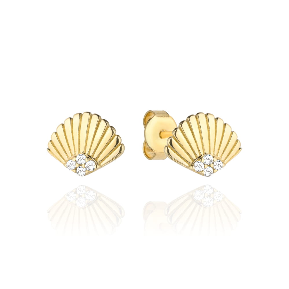 **Cercei din Aur 14K cu Scoică și Zirconii Albe: O bijuterie atemporală și elegantă**