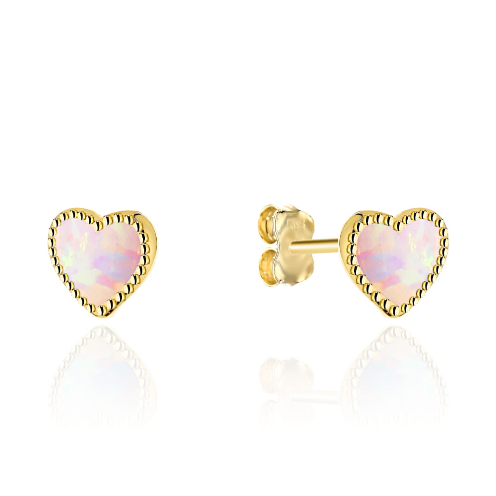 Acești cercei din aur, cu delicatele lor inimi și strălucirea subtilă a opalului roz, sunt perfecți pentru a celebra momentele speciale sau pentru a adăuga o notă de romantism oricărei ținute. Designul cu tijă asigură o purtare confortabilă și sigură, făcându-i ideali pentru utilizarea zilnică sau pentru ocazii speciale. Este o bijuterie care vorbește de la sine, transmițând emoție și eleganță.