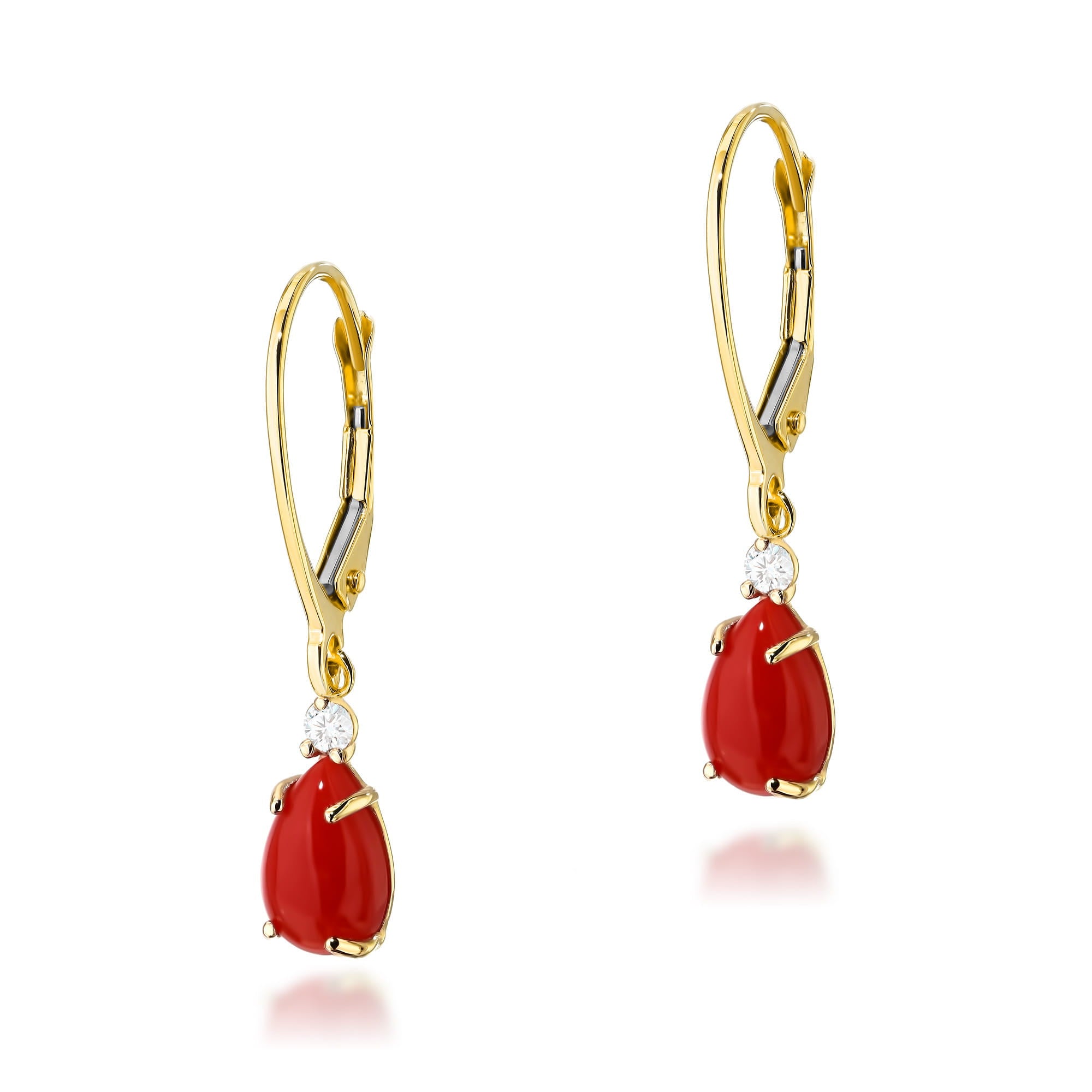 Descoperiți eleganța atemporală a cerceilor K0570, o capodoperă realizată cu aur galben de 14K și îmbogățită de frumusețea vibrantă a coralului natural. Acești cercei rafinati sunt o declarație de stil, potrivită pentru orice ocazie specială sau pentru a adăuga un strop de lux cotidianului. Combinatia perfecta dintre aur si coral, impreuna cu diamantele delicate, ii face o alegere ideala pentru a va completa colectia de bijuterii.
