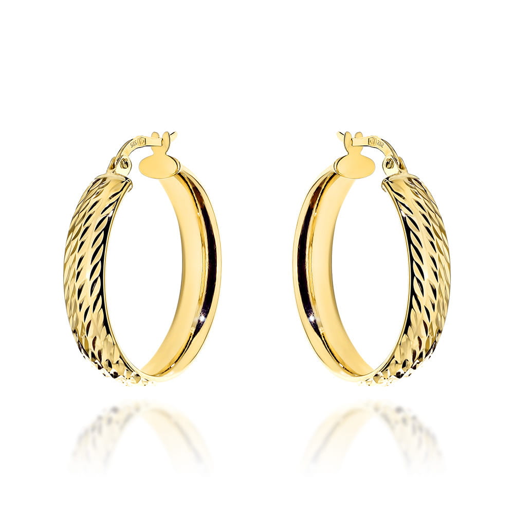 Acești cercei sunt mai mult decât o simplă bijuterie; sunt o declarație de stil. Realizați cu măiestrie din aur 14K, ei impresionează prin designul lor rotund, lat și diamantarea subtilă, care captează lumina și adaugă o strălucire aparte. Sunt perfecți pentru a fi purtați zi de zi, dar și pentru a completa o ținută elegantă de seară. Investiția în acești cercei este o garanție a calității și a stilului atemporal.