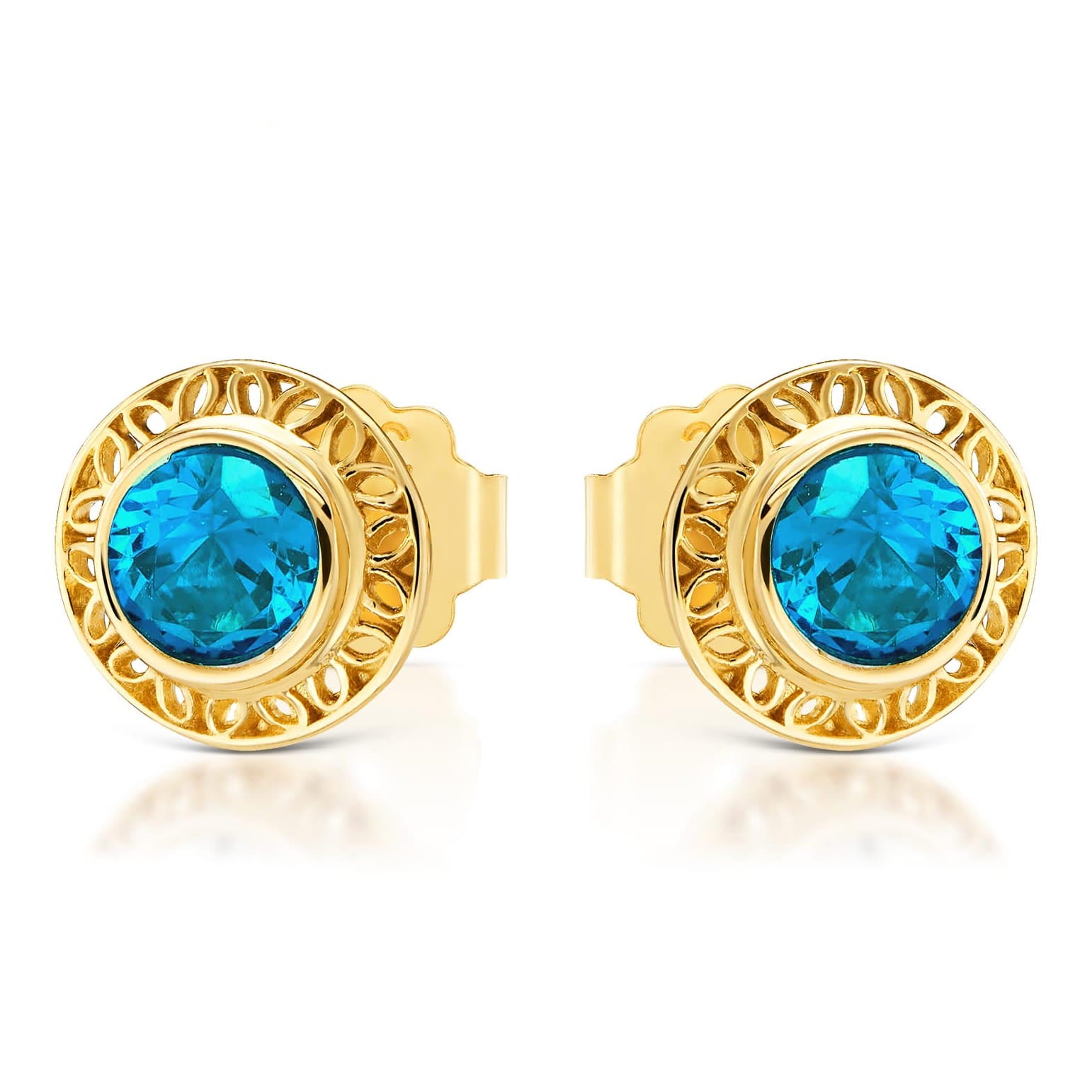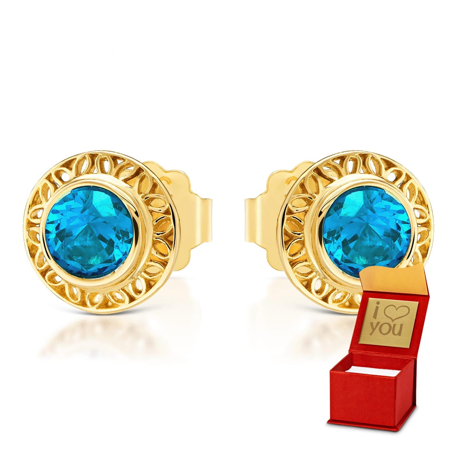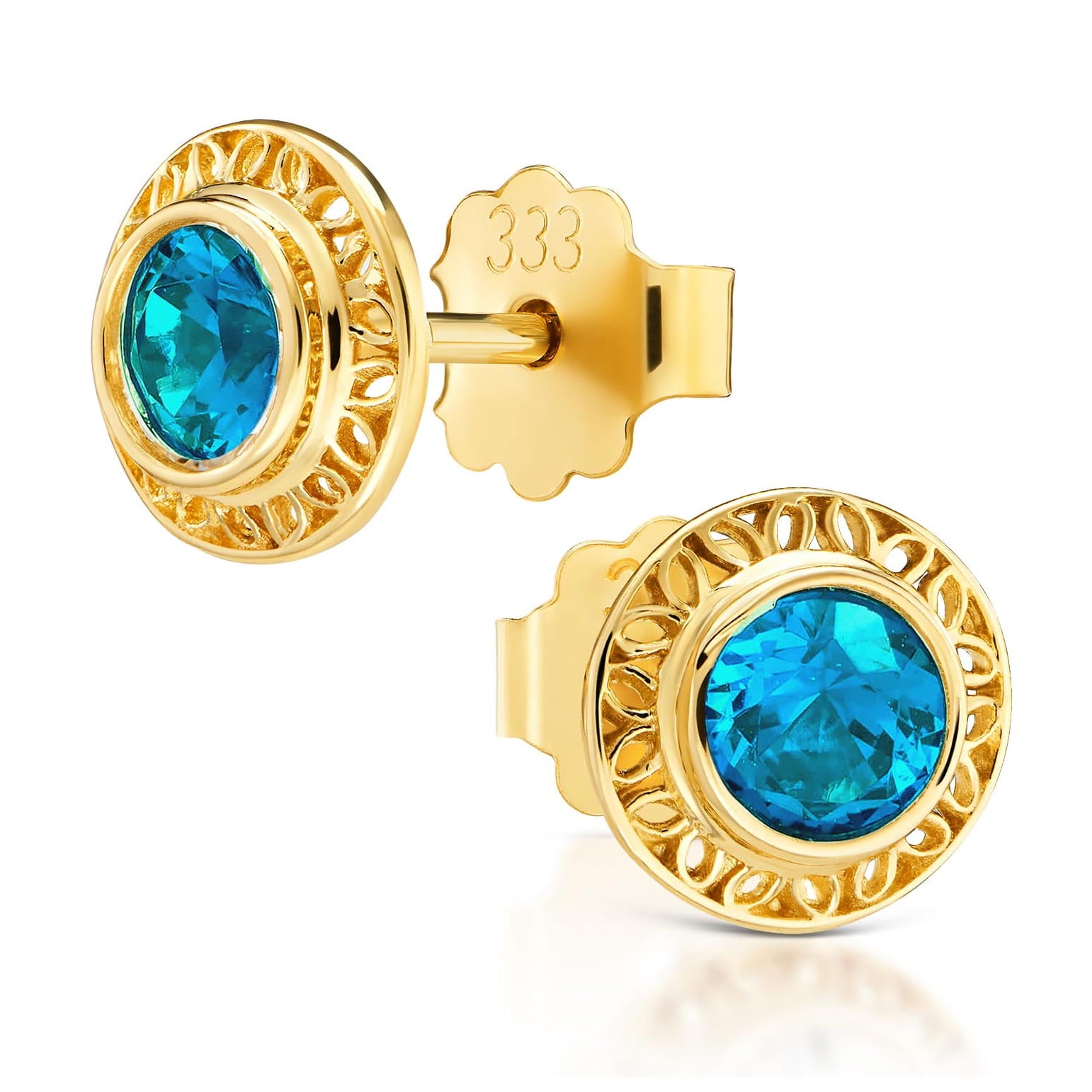 Cercei Aur 8K Ażurowy cu Zirconiu Turcoaz