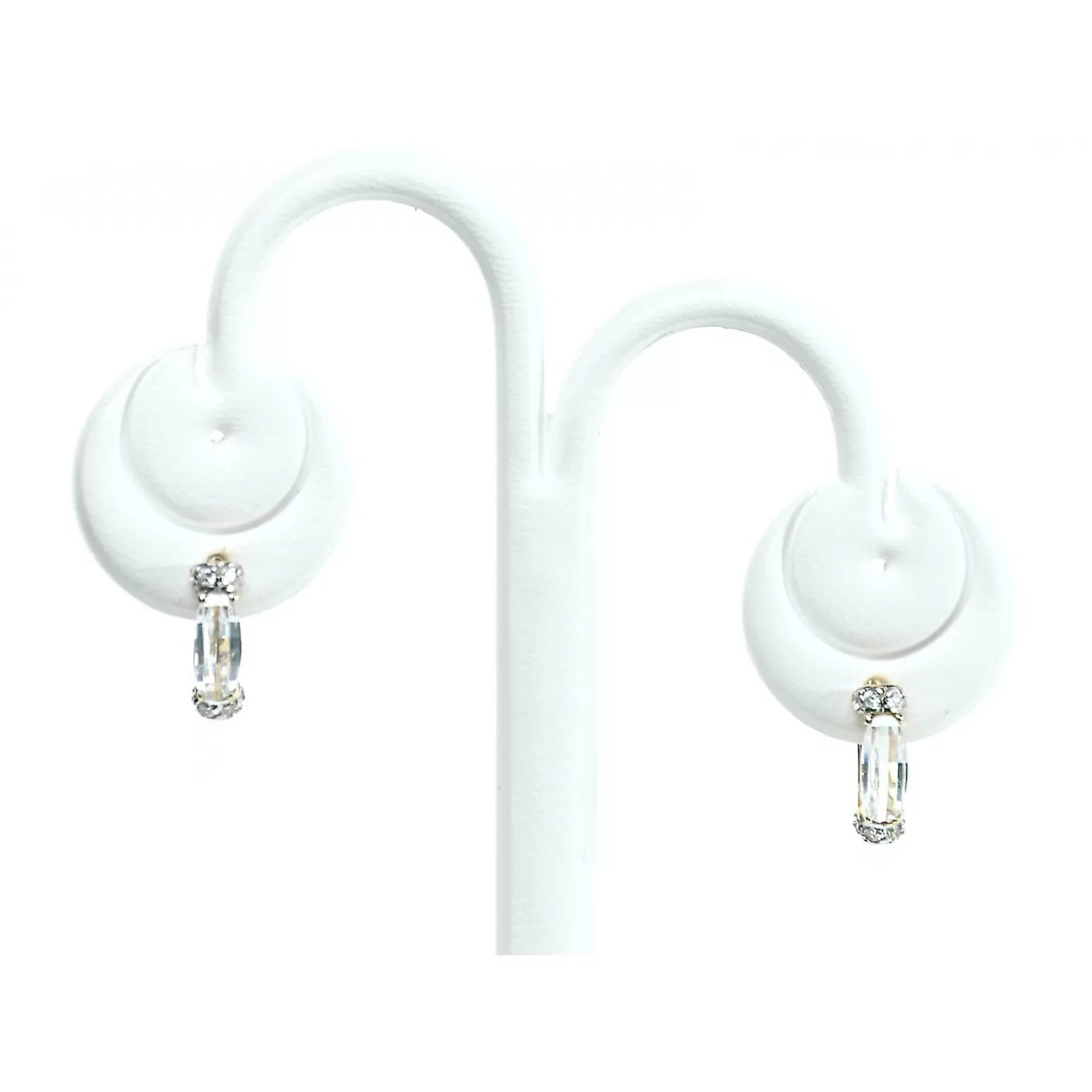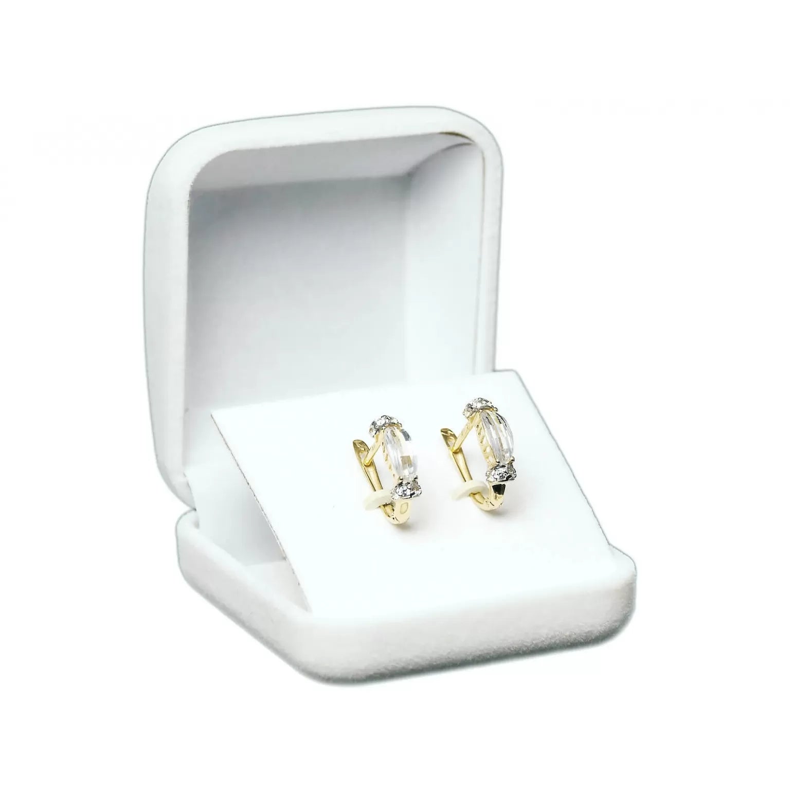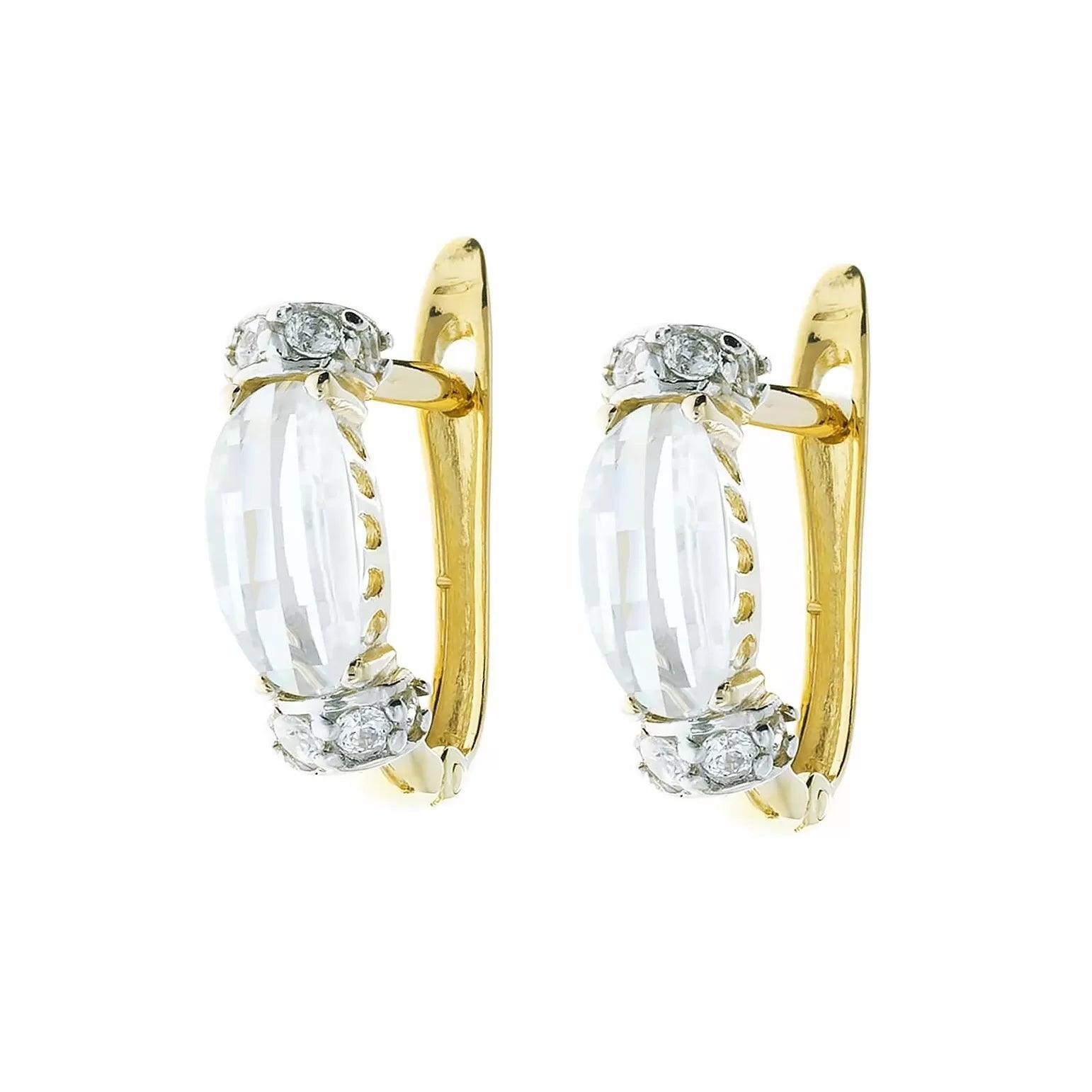 Acești cercei din aur 8K, meticulos lucrați, emană o eleganță atemporală. Piatra centrală strălucitoare, înconjurată de pietre laterale delicate, captează lumina cu fiecare mișcare, creând un joc fascinant de lumini și umbre. Sistemul de închidere de tip englezesc asigură confort și siguranță. O bijuterie rafinată, perfectă pentru a completa o ținută elegantă sau pentru a fi dăruită unei persoane dragi.