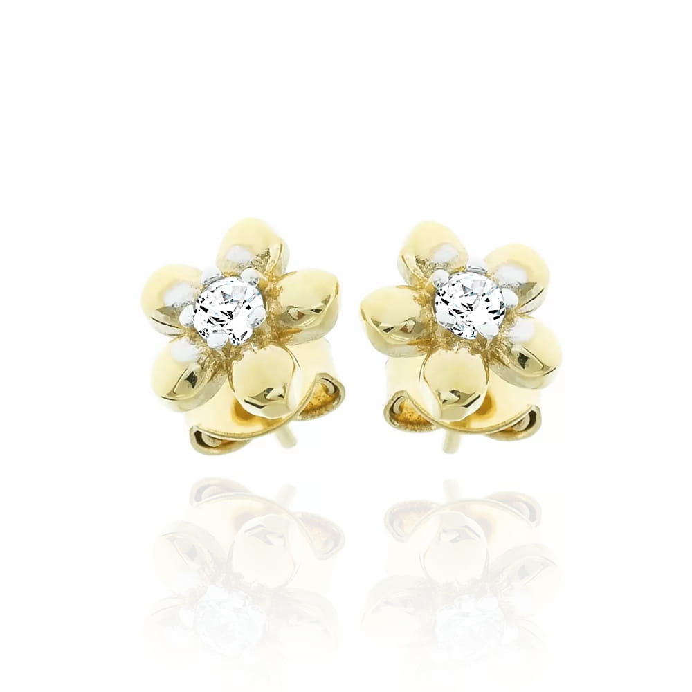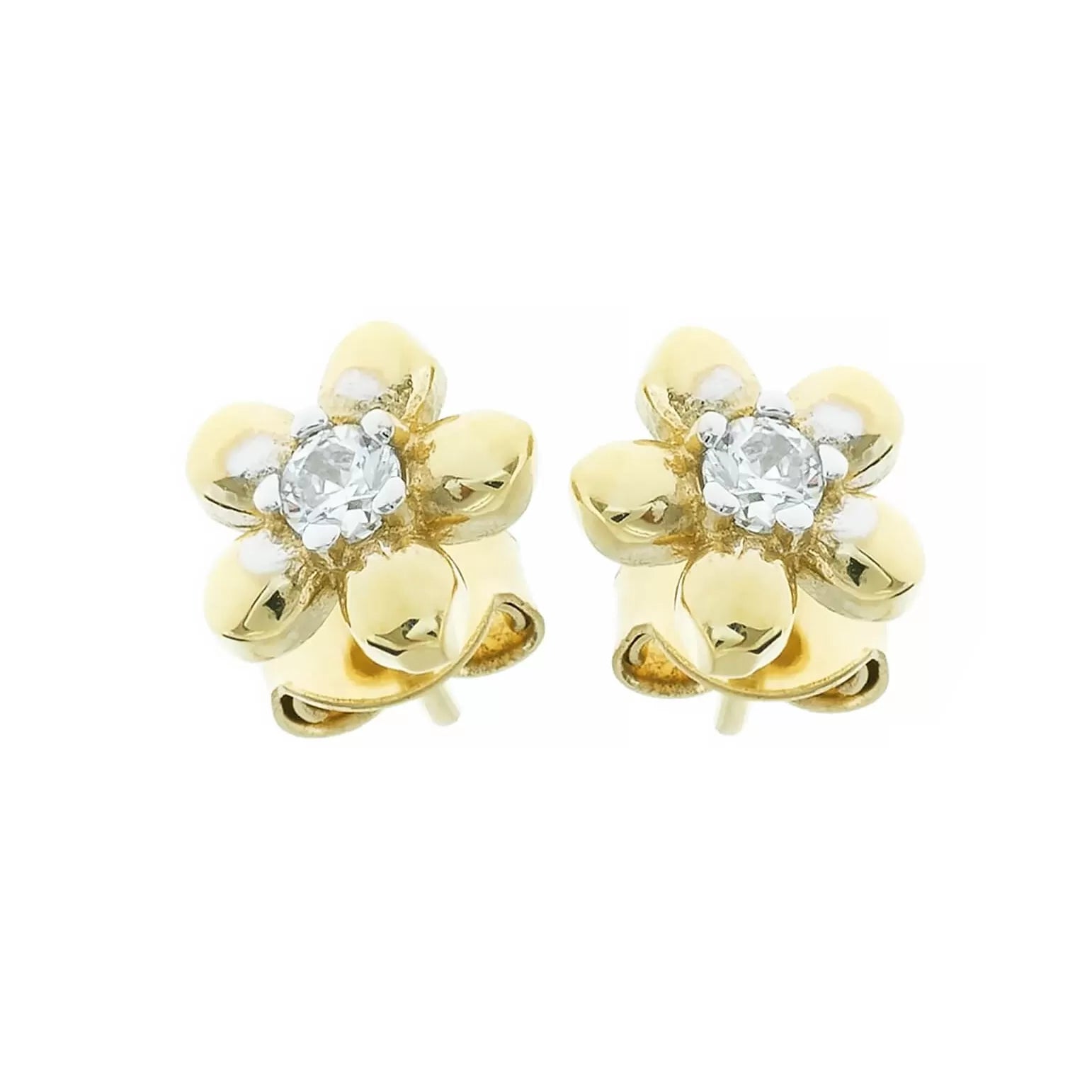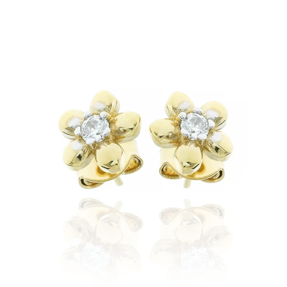 Cercei Aur 8K cu Zirconiu Alb, Model Floare