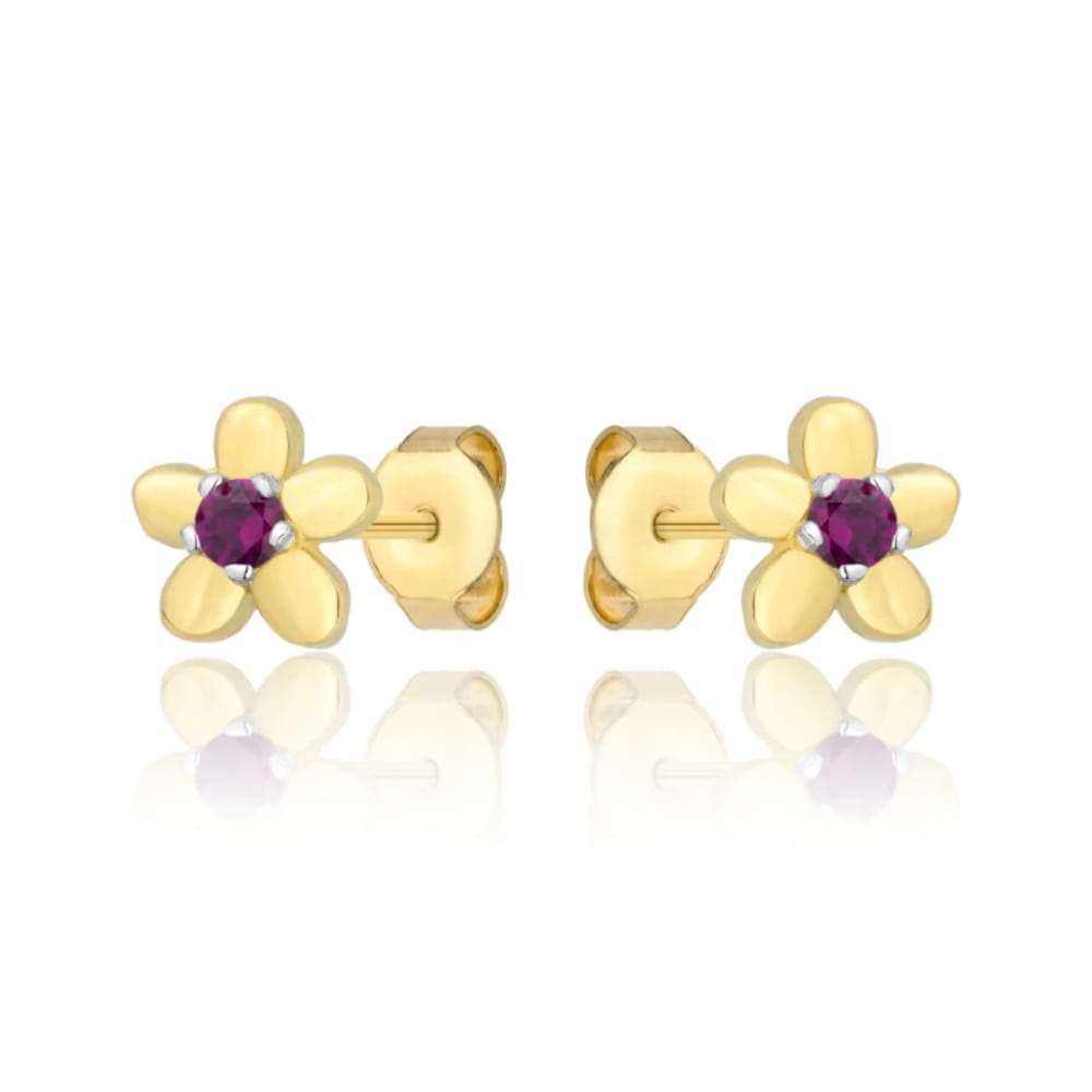 Cercei Aur 8K cu Zirconiu Roșu în Formă de Floare