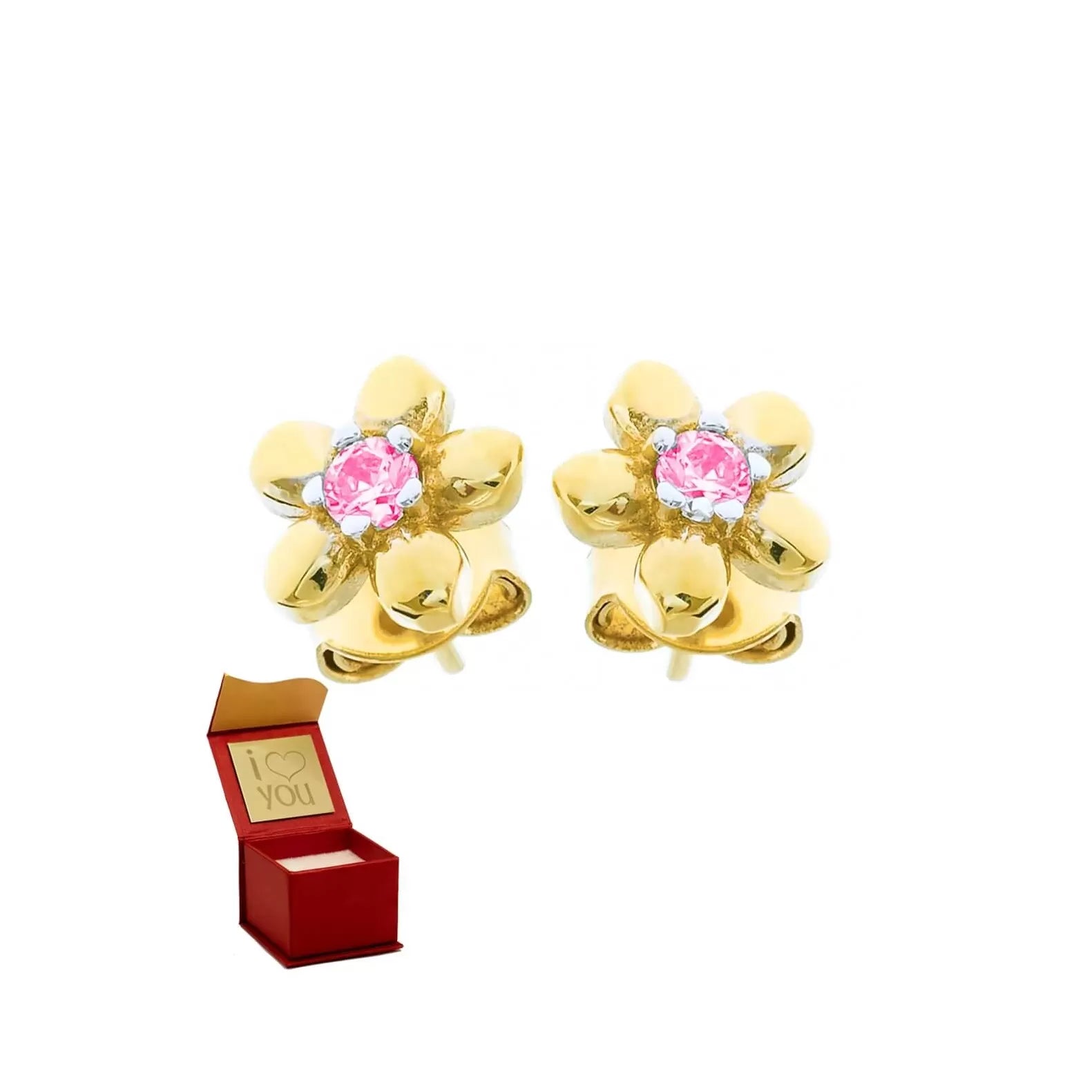 Cercei Aur 8K cu Zirconiu Roz, Model Floare