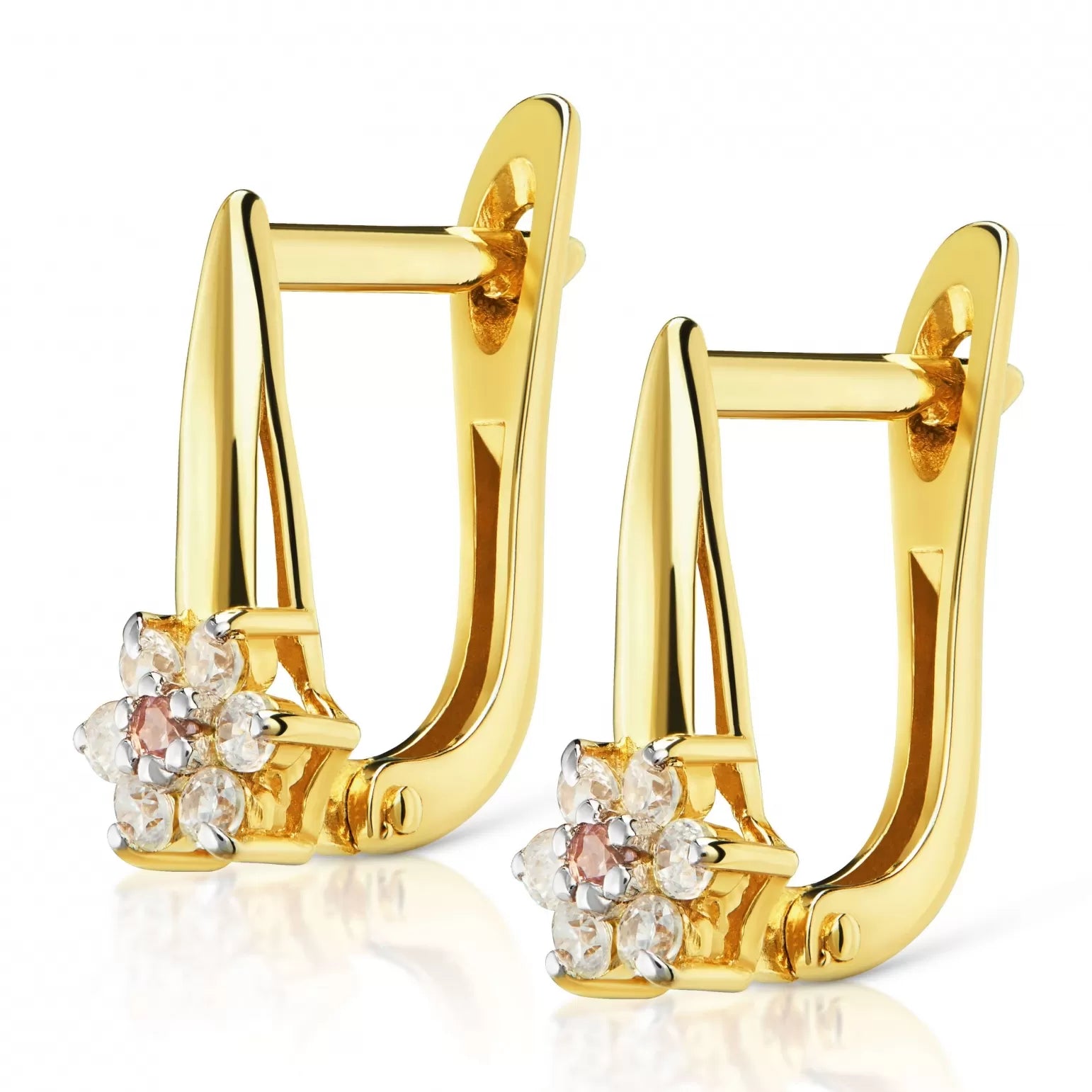 Cercei Aur 8K cu Zirconiu Roz, Model Floare