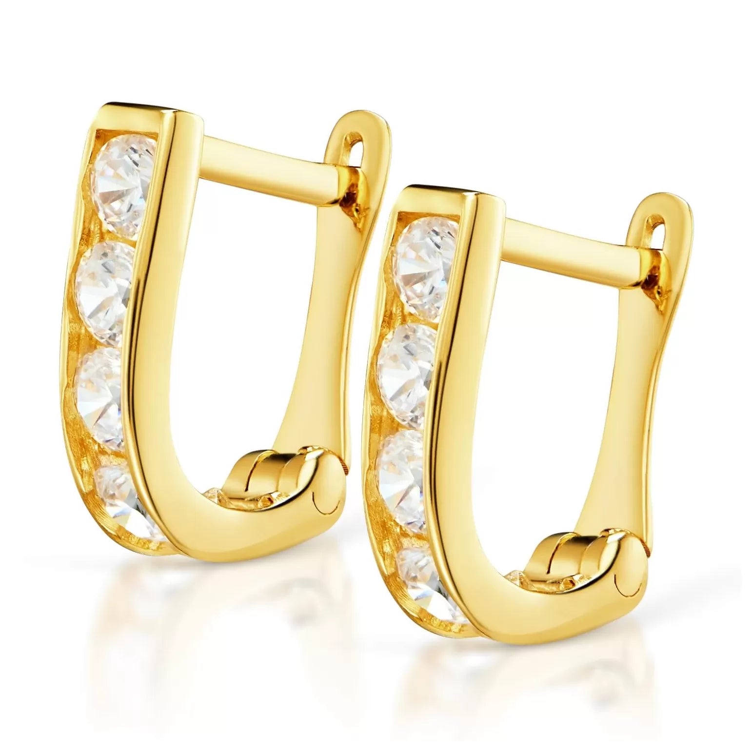 Descoperiți eleganța simplă și rafinată a acestor cercei din aur 8K, ornați cu pietre strălucitoare de zirconiu. Perfecți atât pentru ocazii speciale, cât și pentru a adăuga o notă de lux ținutei de zi cu zi, acești cercei vor completa cu grație orice stil. Sistemul de închidere de tip englezesc asigură confort și siguranță pe tot parcursul zilei.