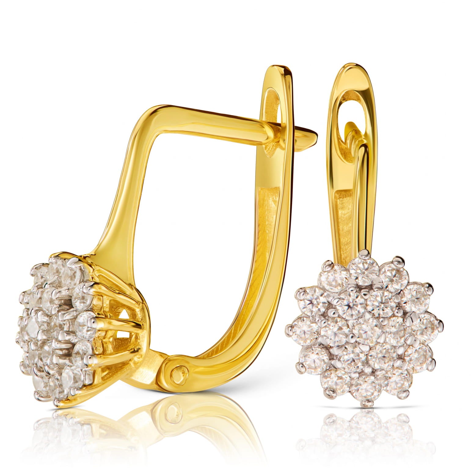 Cercei Aur 8K Delicați în Formă de Floare cu Pietre Albe Strălucitoare