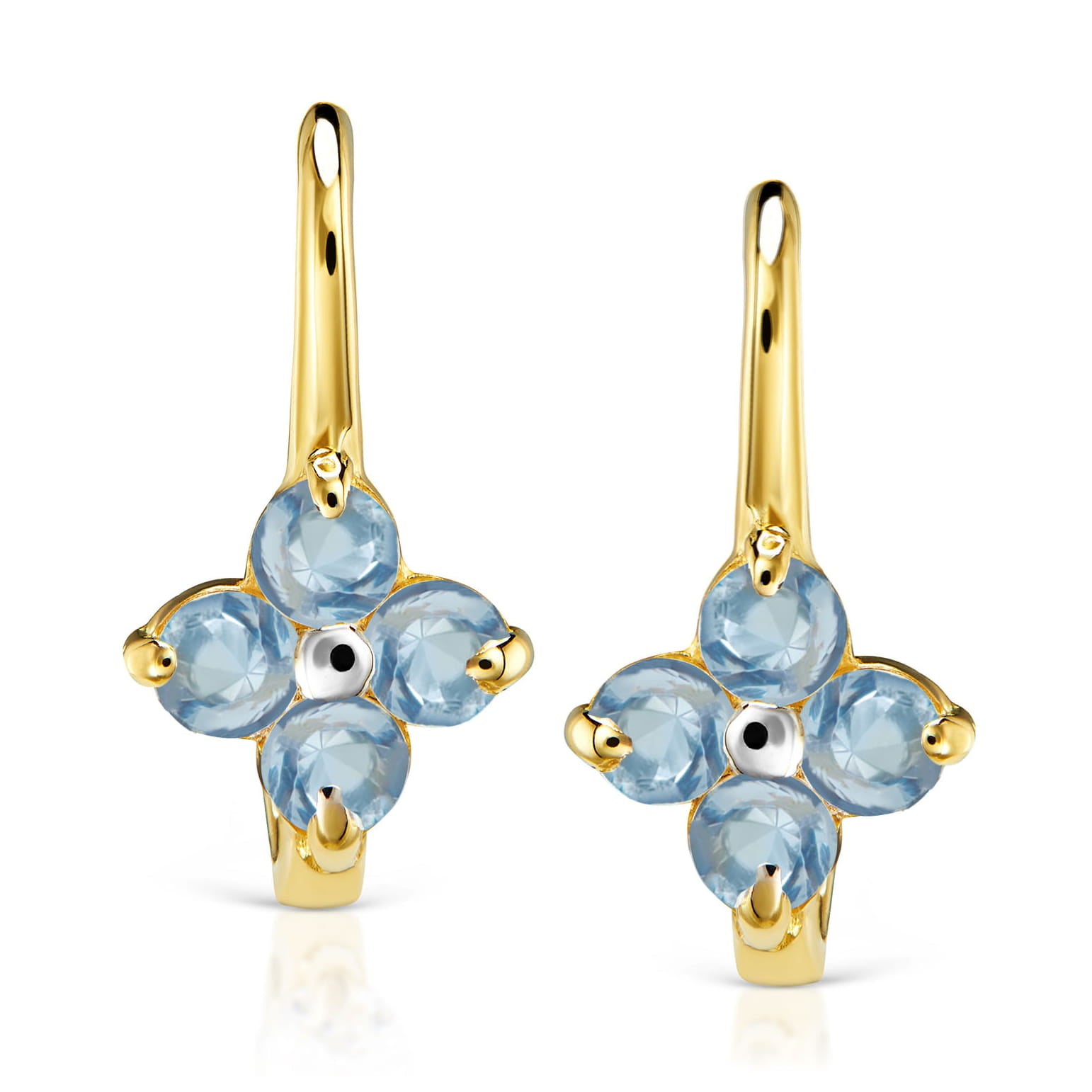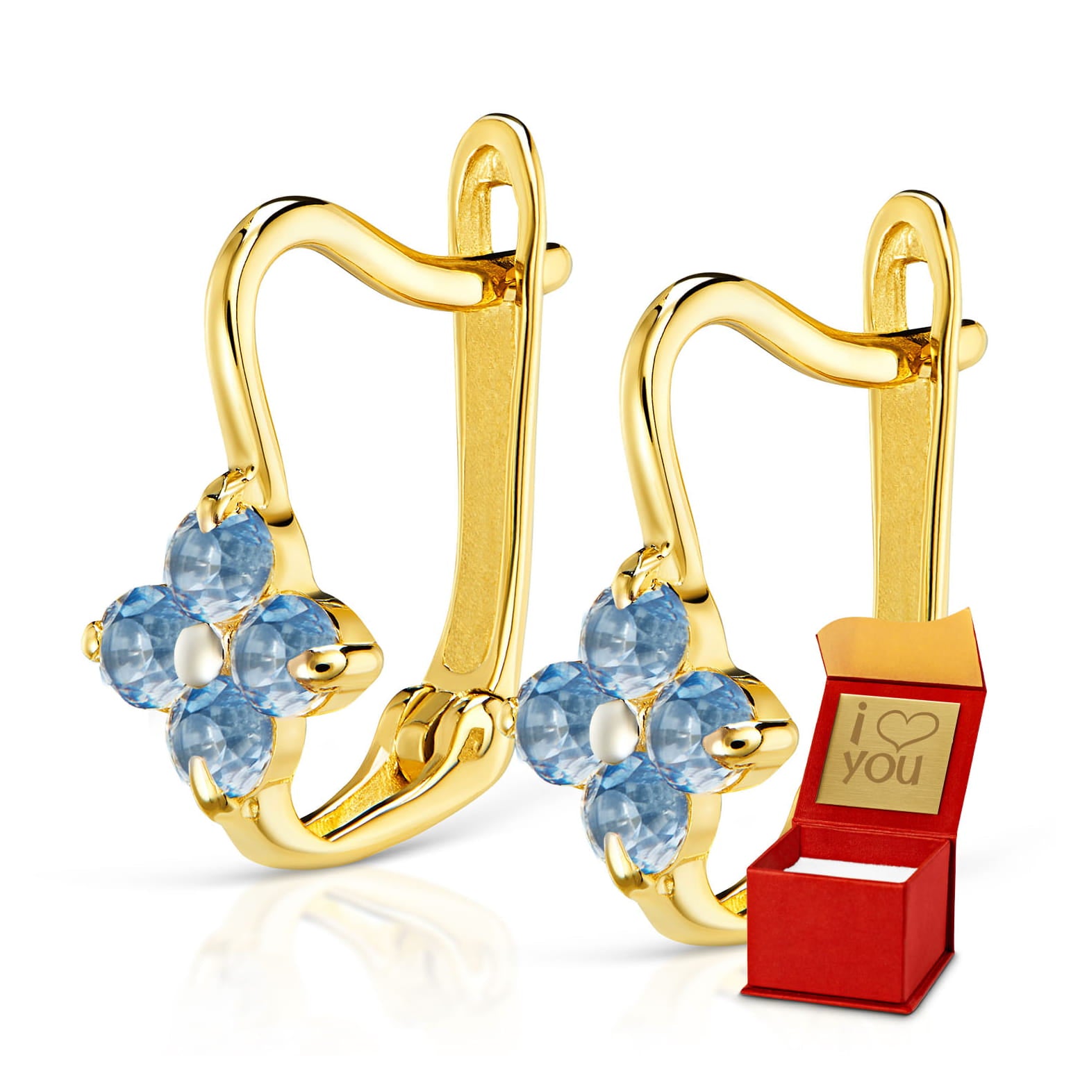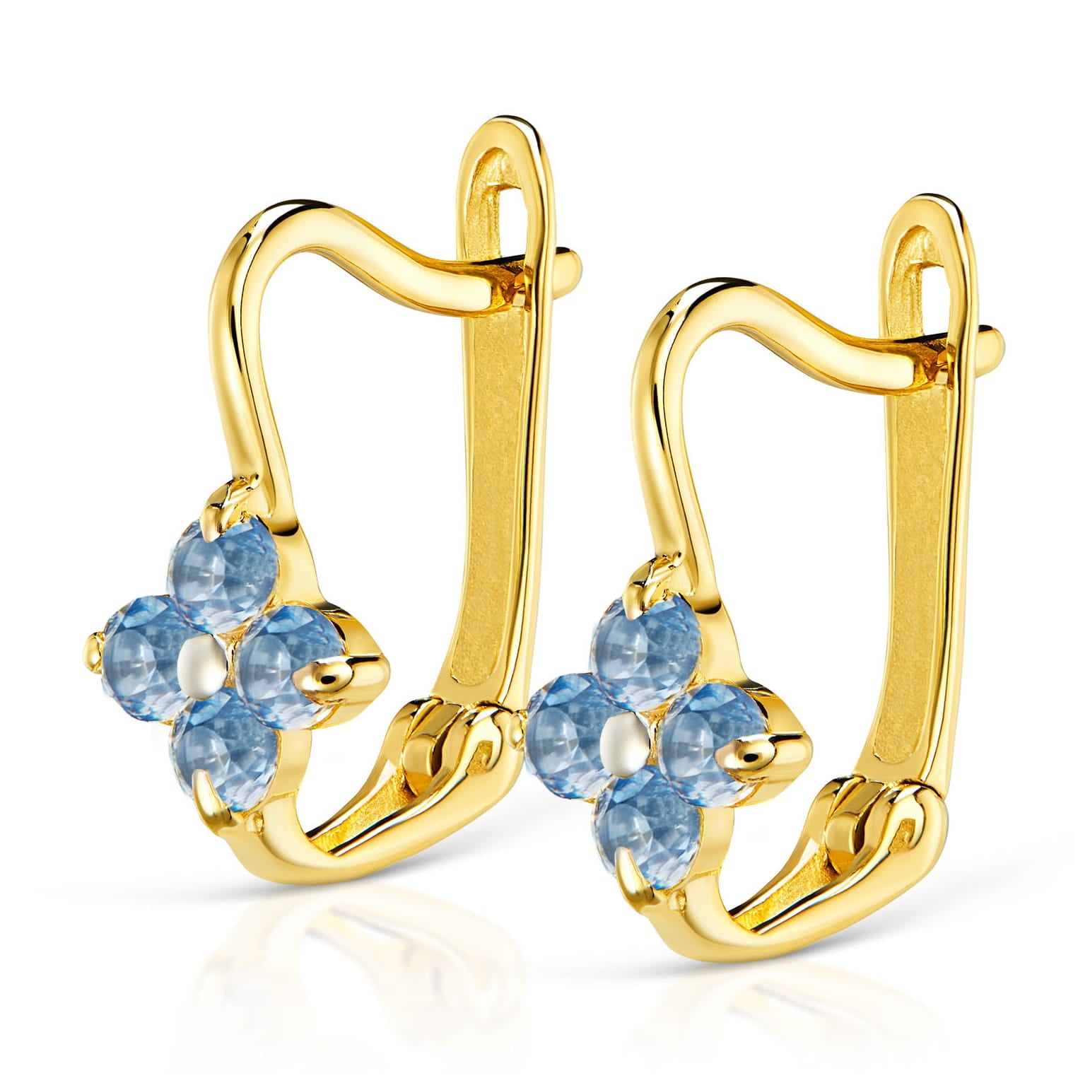 Cercei Aur 8K Floricele Albastre Delicate