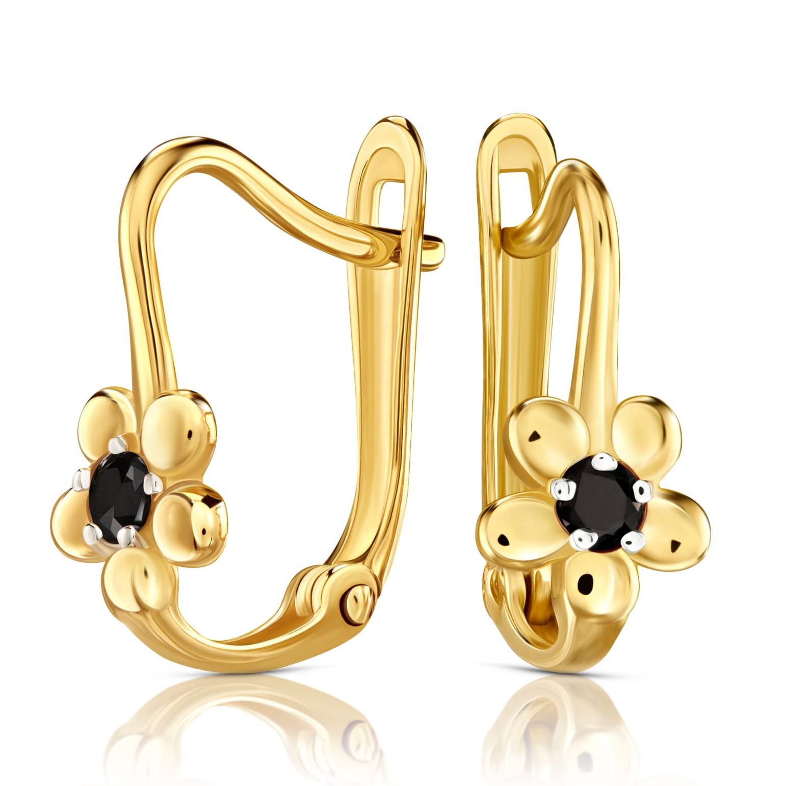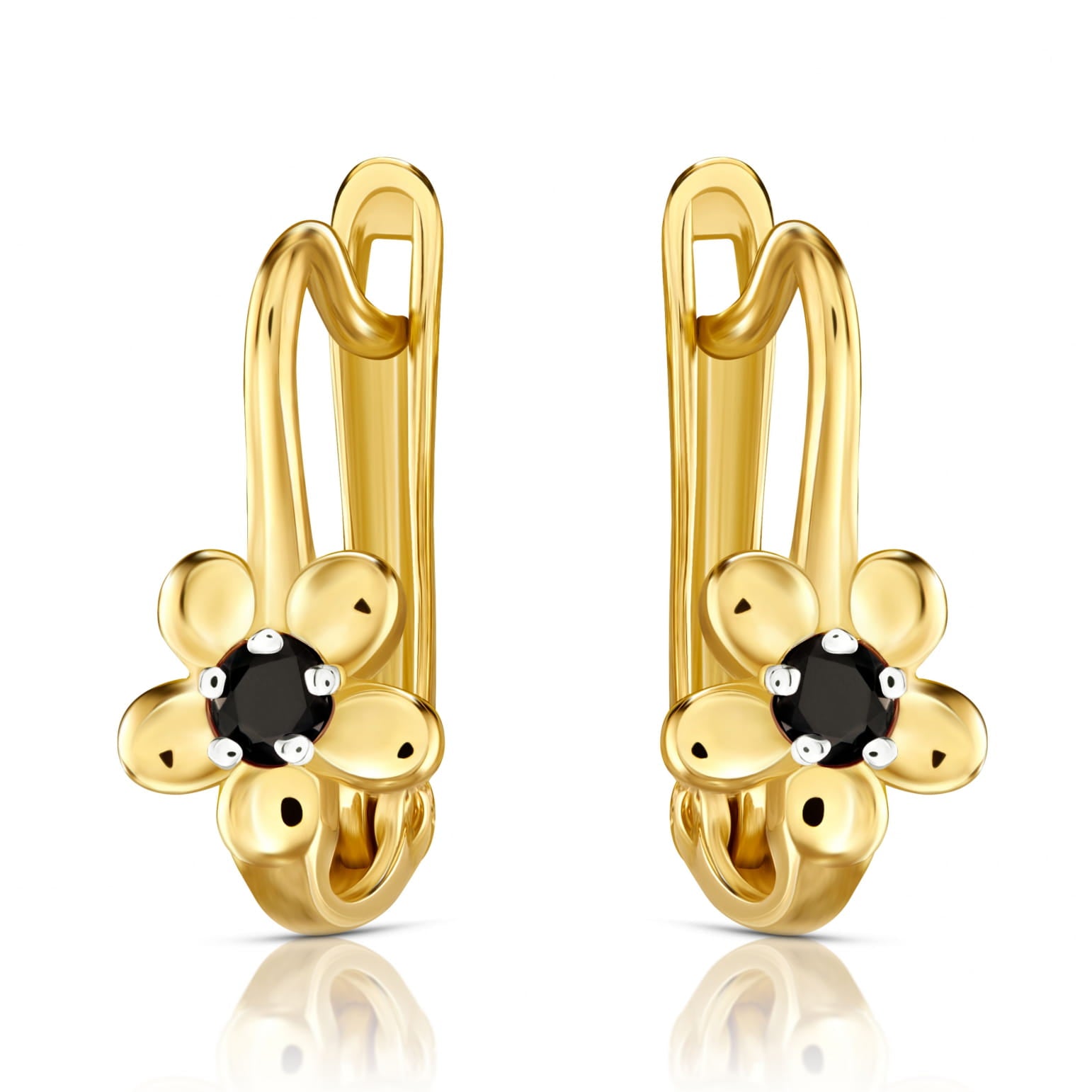 Cercei Aur 8K Flowers Negri cu Zirconiu