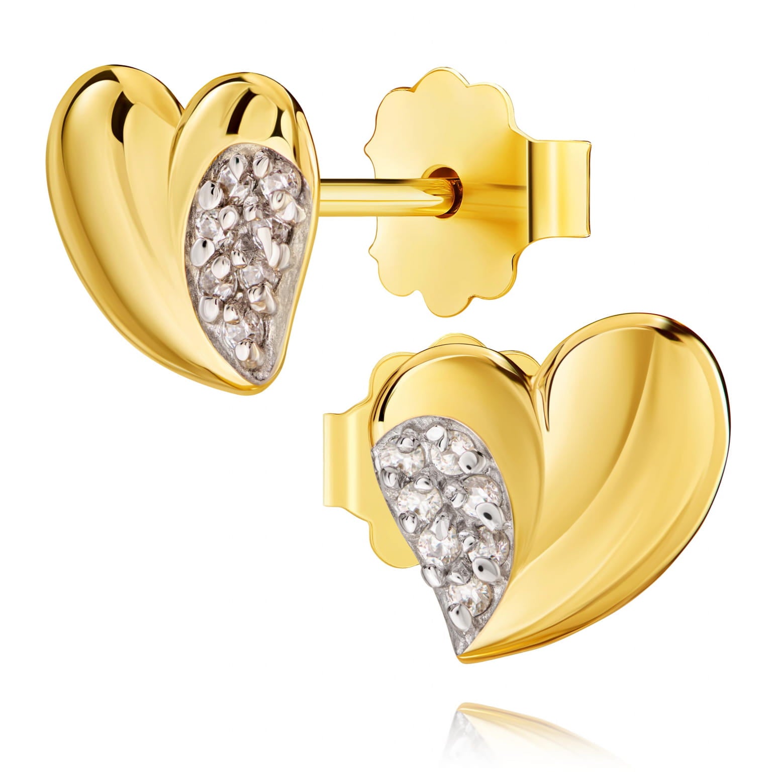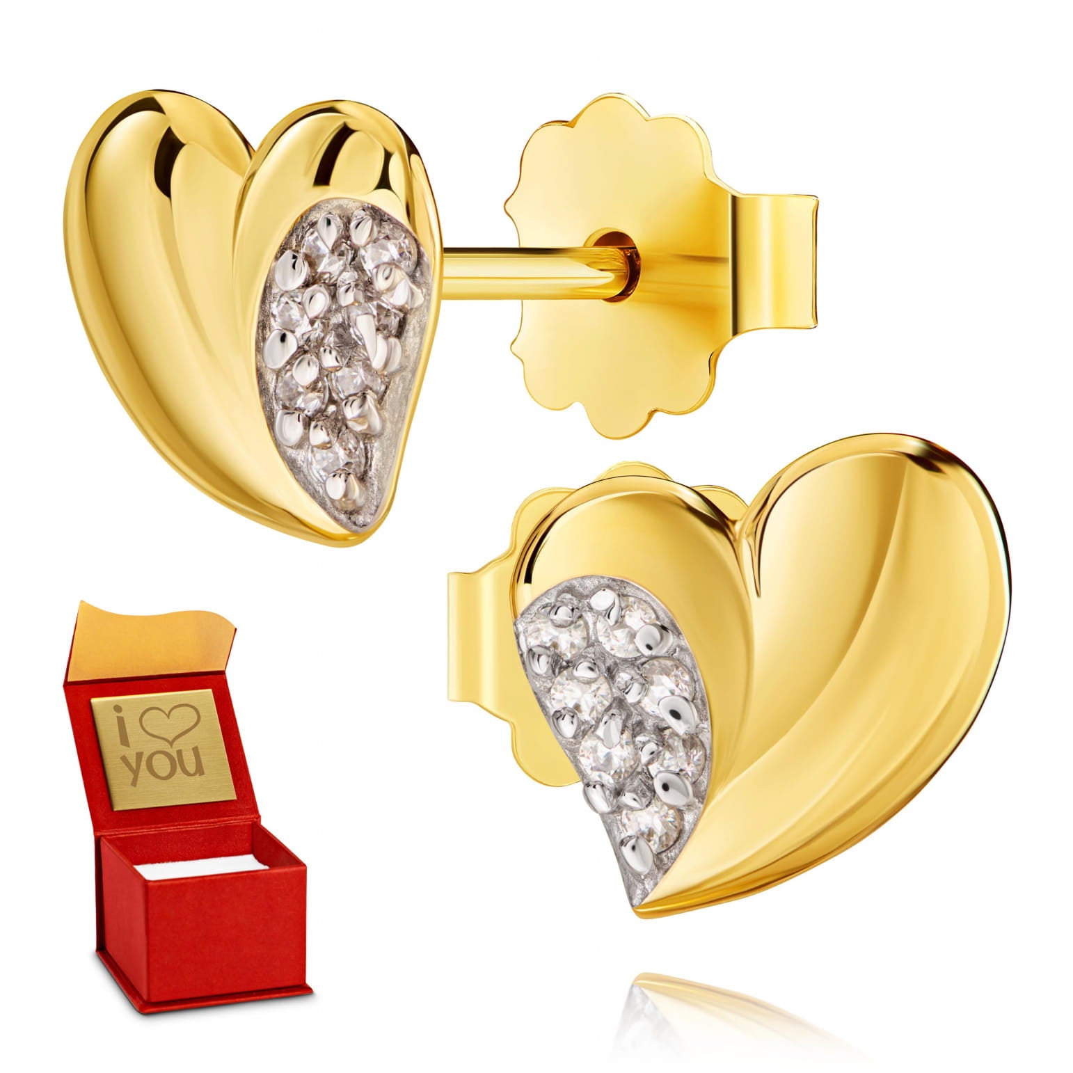 Cercei Aur 8K Inimă cu Zirconiu, Sistem de Prindere cu Știft