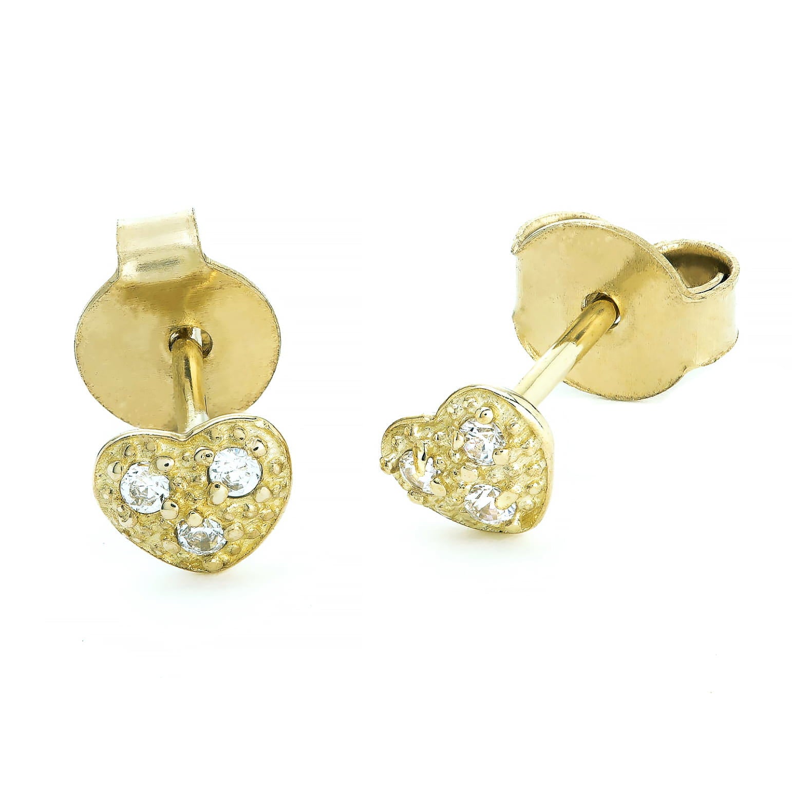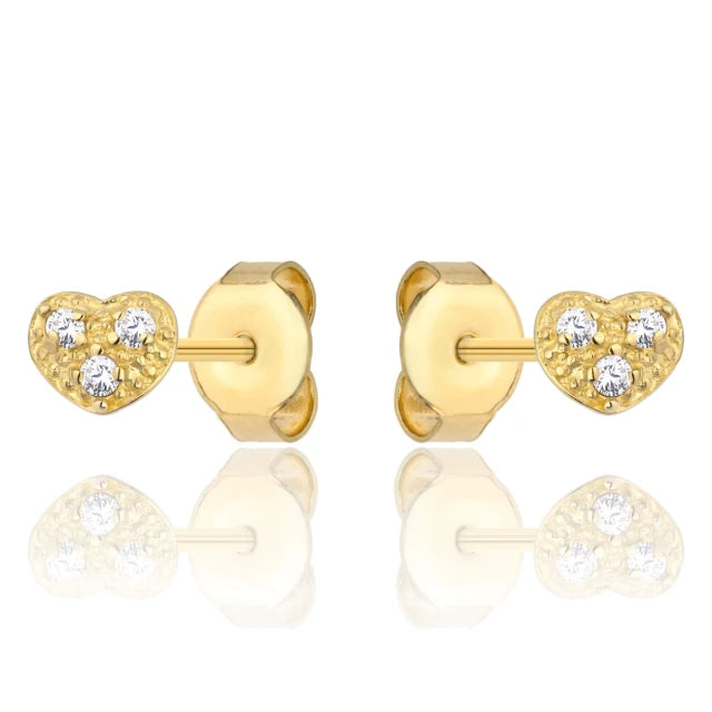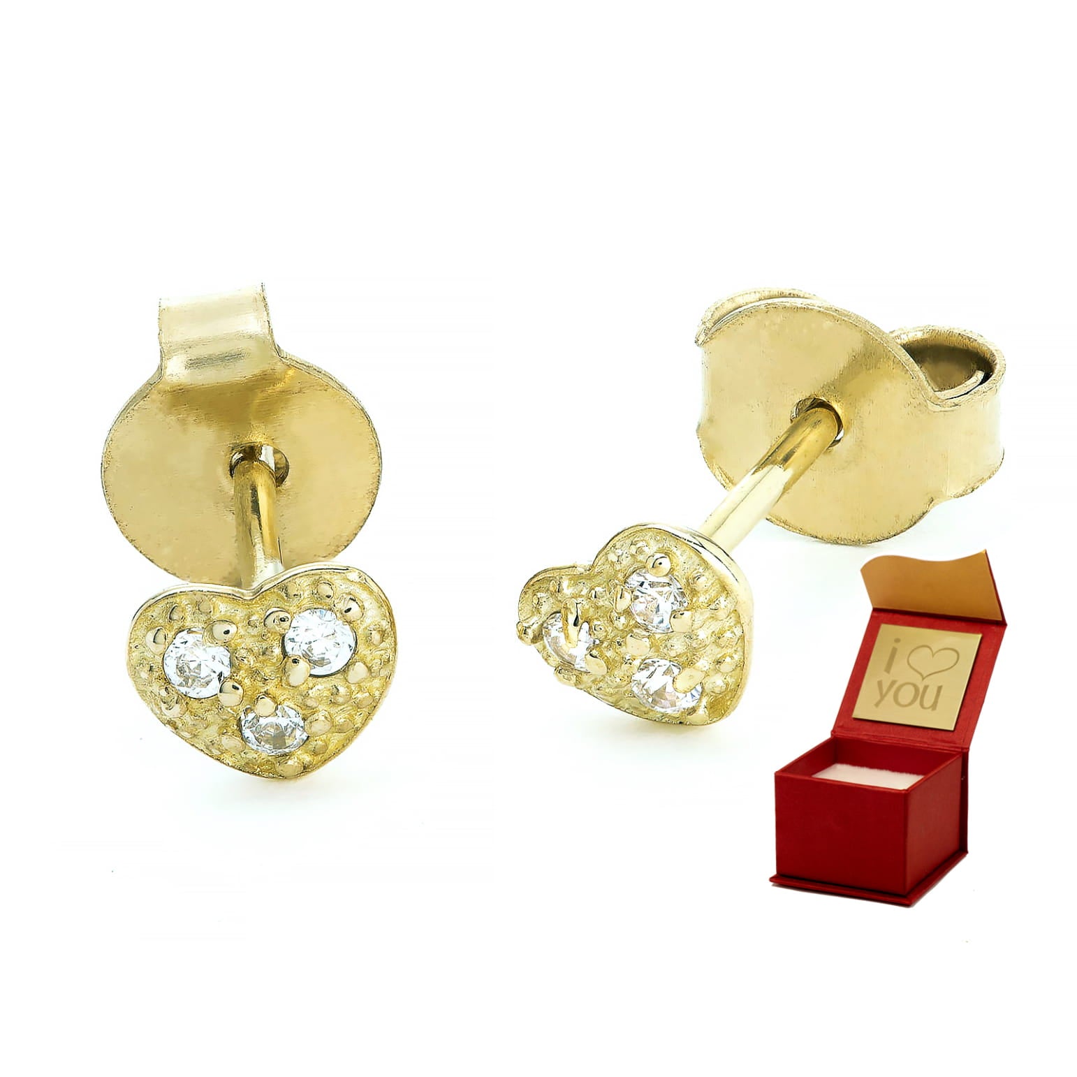 Cercei Aur cu Zirconiu – Inimioare Mici și Delicate