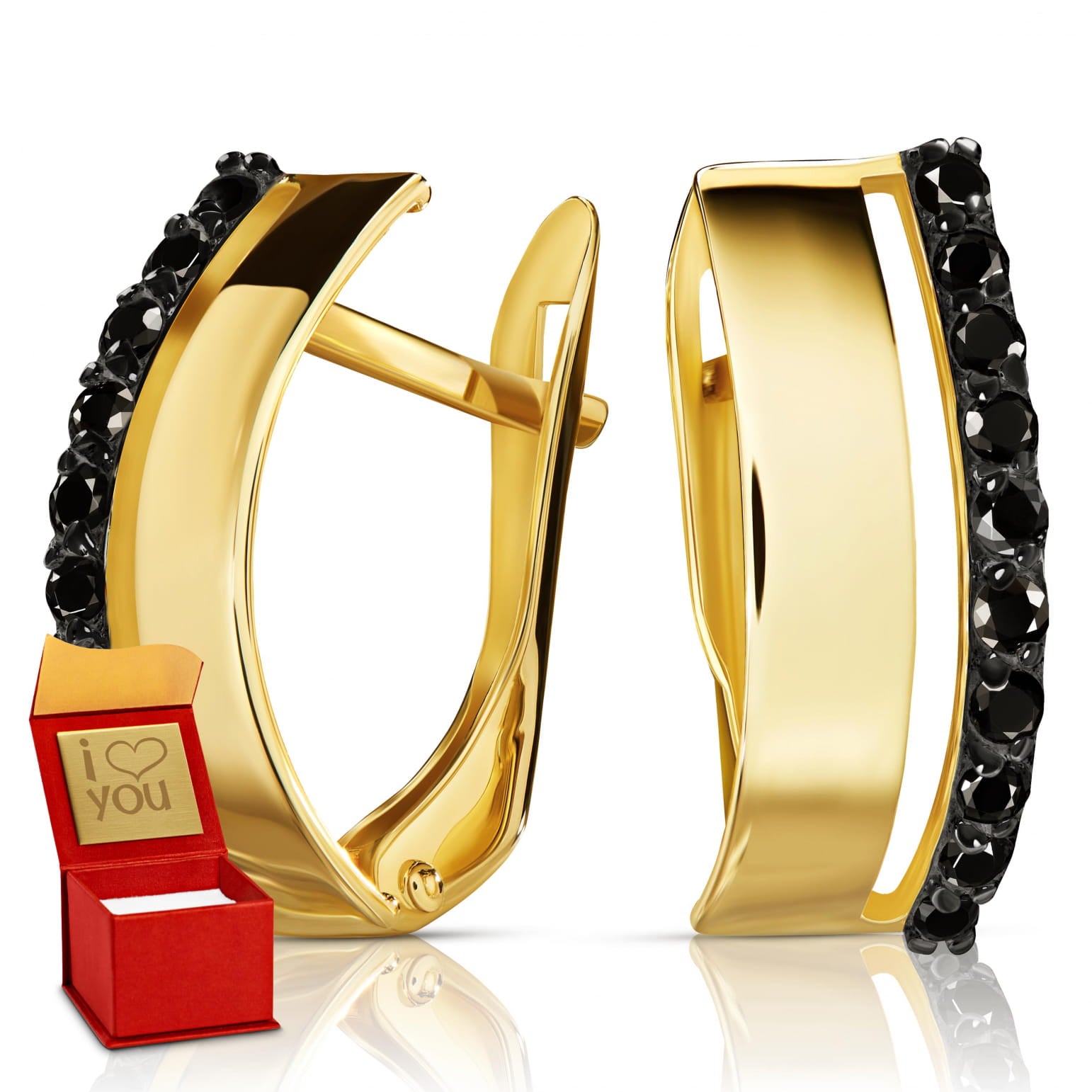 Cercei Aur 8K Lana cu Pietre Negre