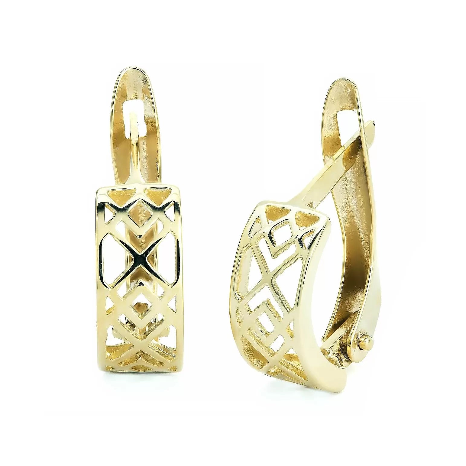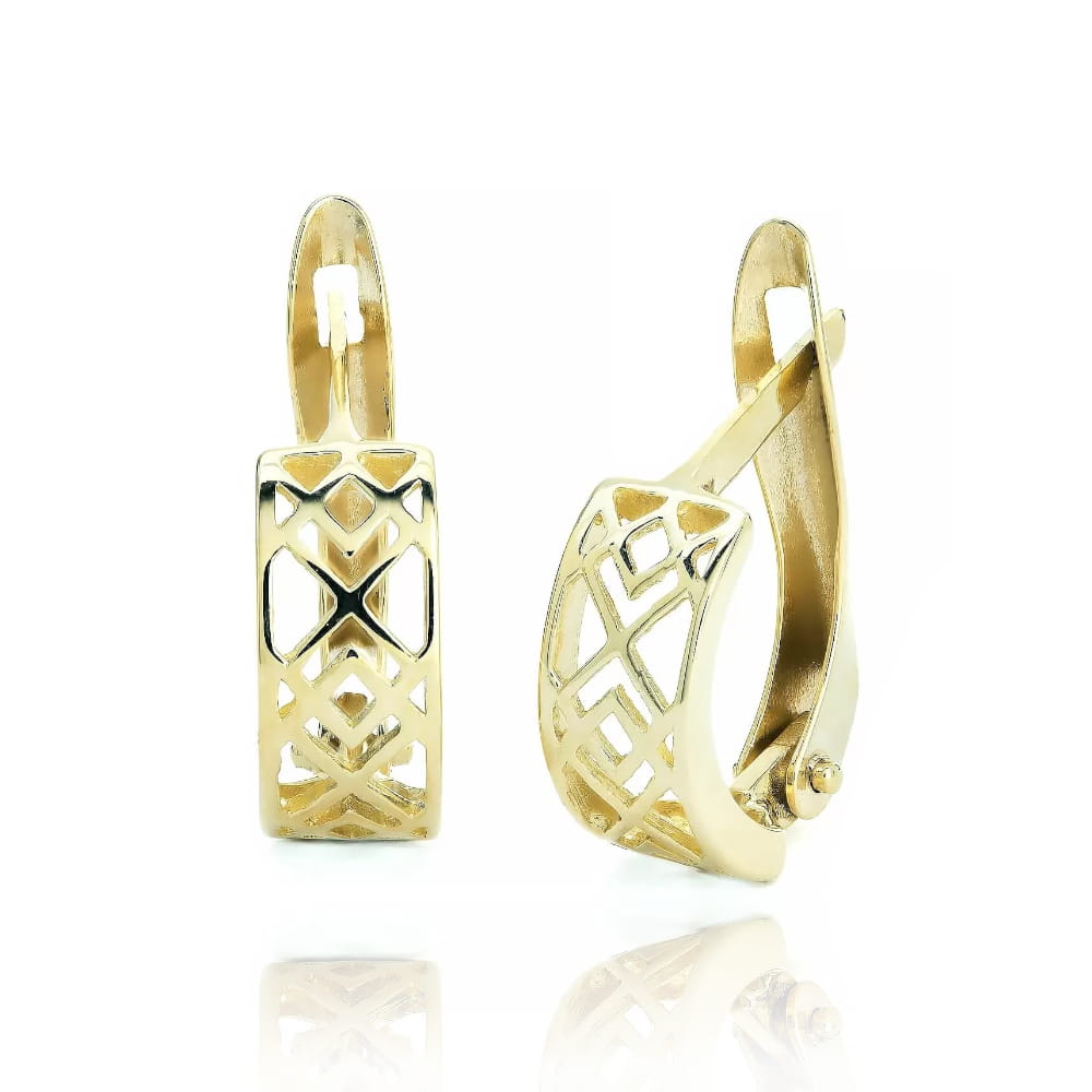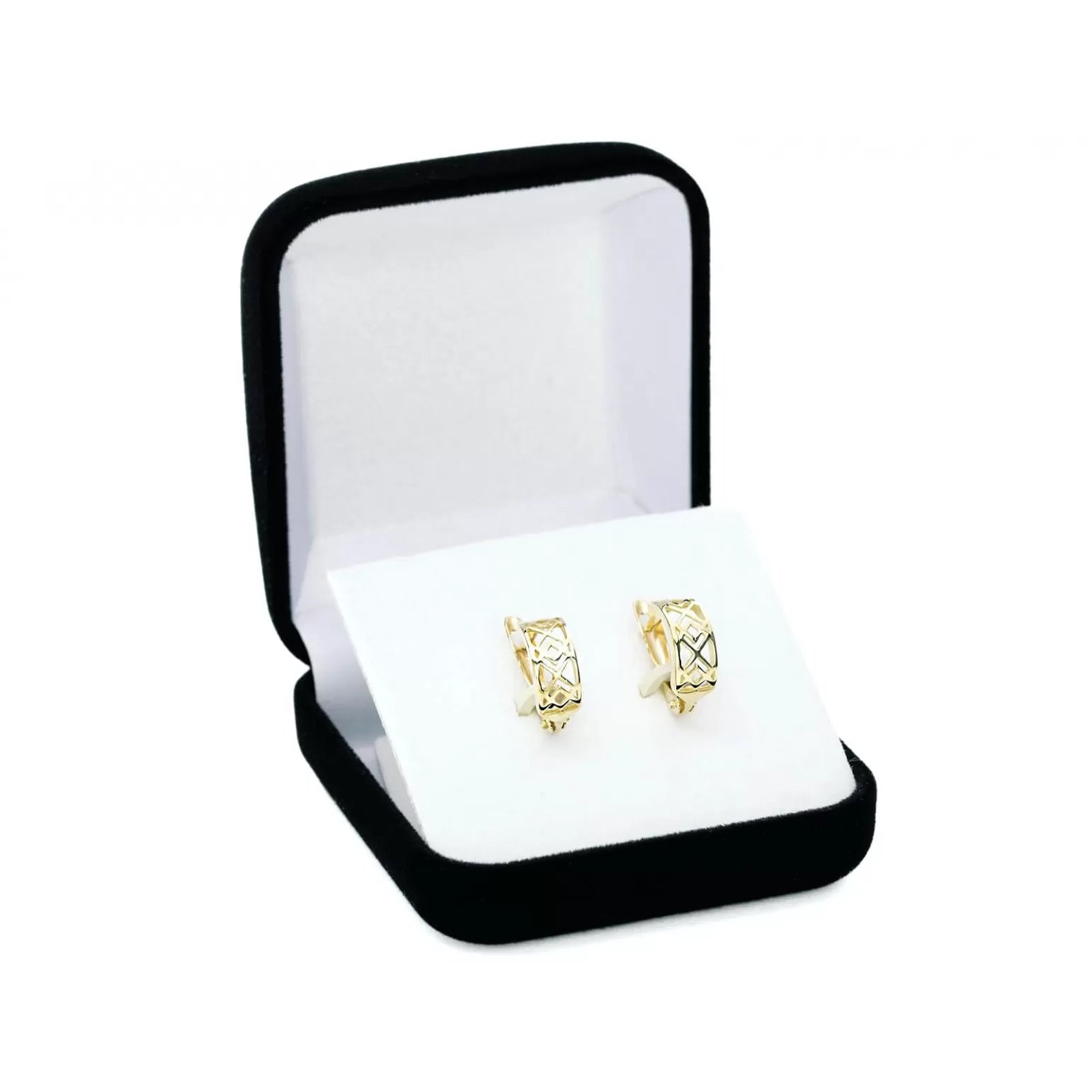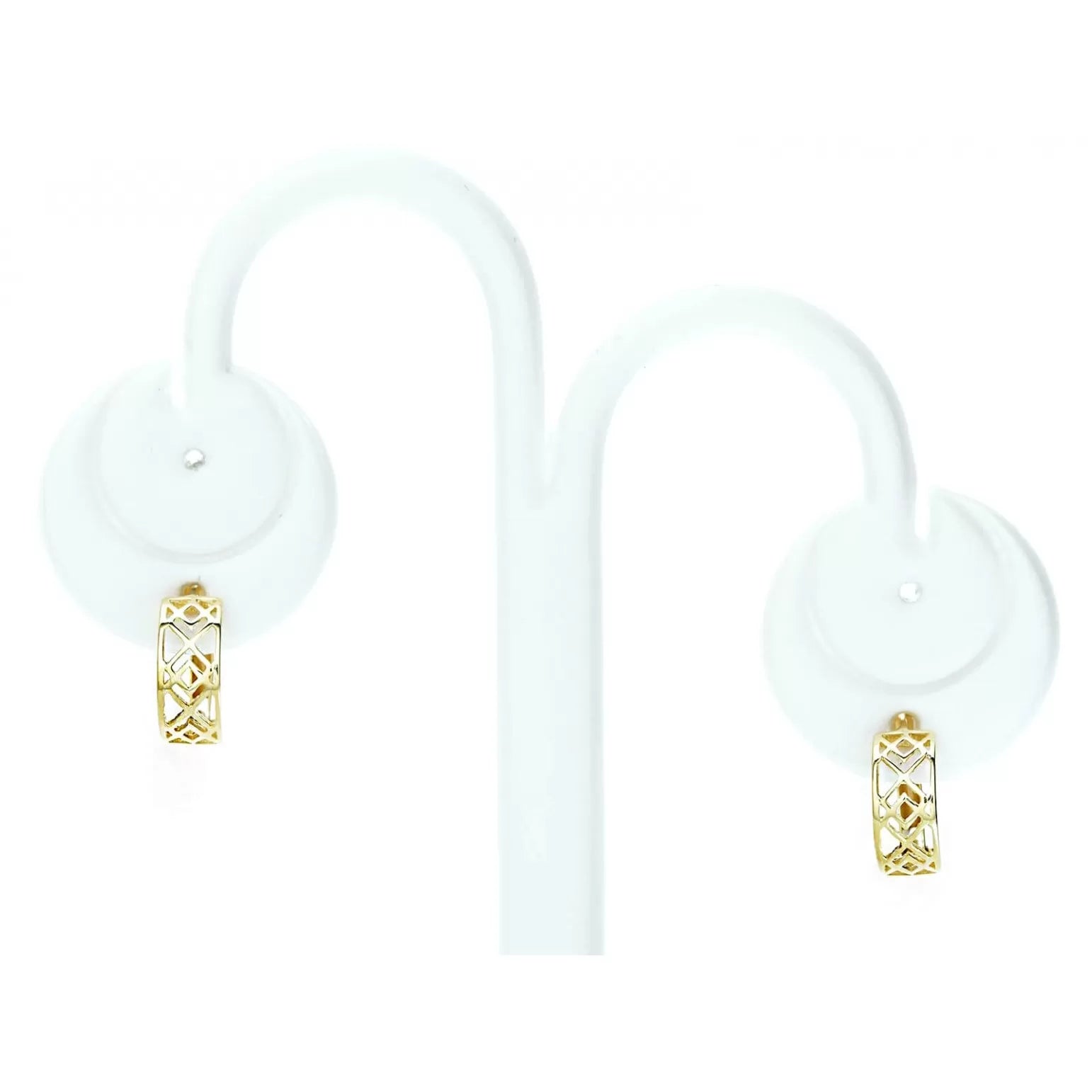 Descoperiți eleganța atemporală a acestor cercei din aur 8K, realizați cu un model ajurat rafinat. Forma dreptunghiulară și designul delicat adaugă o notă subtilă de lux oricărei ținute. Sistemul de închidere tip șurub asigură confort și siguranță pe tot parcursul zilei. Perfecți pentru a fi dăruiți sau pentru a vă răsfăța, acești cercei vor completa cu grație orice colecție de bijuterii.
