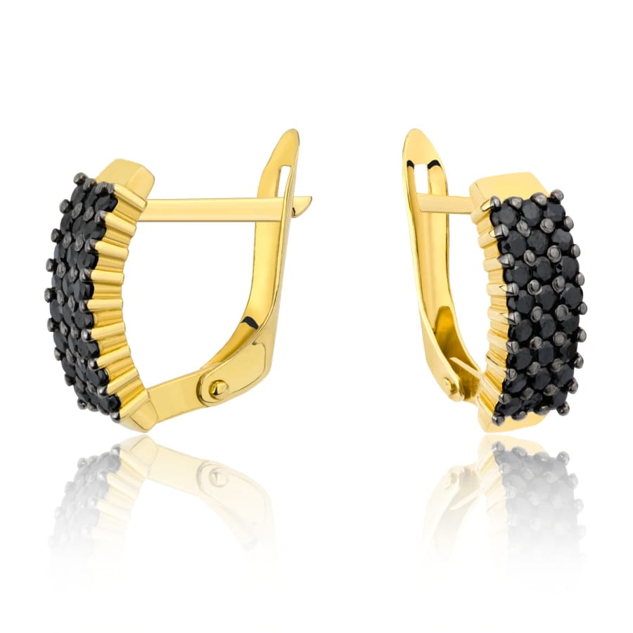 Descoperiți eleganța atemporală a acestor cercei din aur, împodobiți cu zirconii negre strălucitoare. Designul lor simplu, dar rafinat, emană un farmec subtil, perfect pentru a completa orice ținută, de la cea de zi cu zi la cea de seară. Fiecare piatră de zirconiu negru este atent fixată, reflectând lumina într-un joc fascinant de umbre și lumini. Acești cercei sunt mai mult decât o simplă bijuterie; sunt o expresie a stilului și a rafinamentului dumneavoastră.