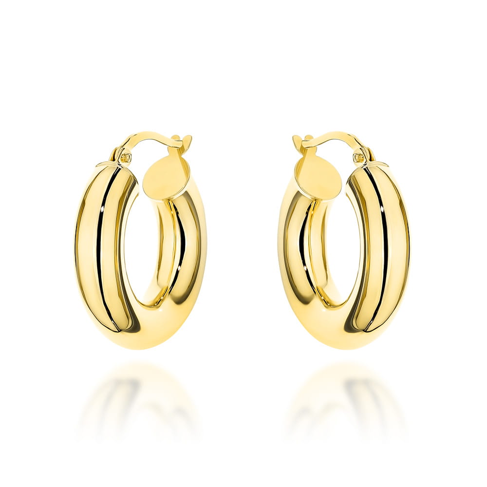 Acești cercei rotunzi, realizați din aur galben de 14K (585), sunt o expresie a rafinamentului și a stilului atemporal. Cu un design clasic, în formă de cerc perfect, și o închidere engleză sigură, acești cercei sunt alegerea ideală pentru a completa orice ținută, de la cea casual la cea elegantă. Cu un diametru de 20 mm și o lățime de 5 mm, sunt suficient de statement pentru a atrage privirile, dar și suficient de delicați pentru a fi purtați zilnic.