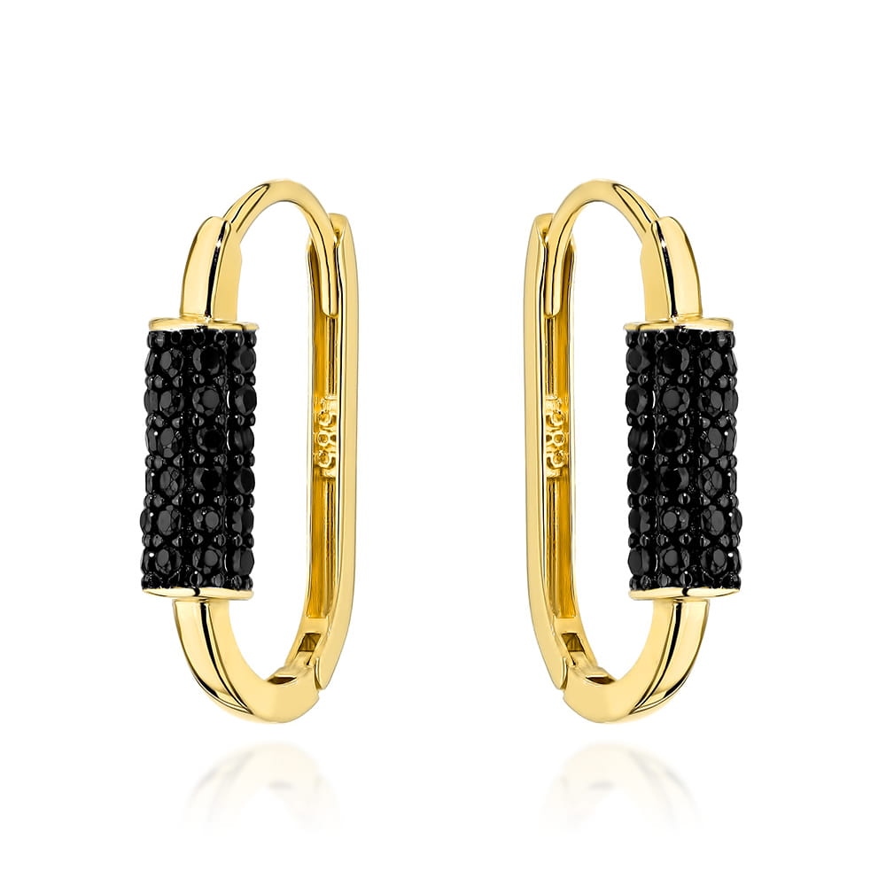 Cercei Aur Galben Oval Cu Pietre Negre