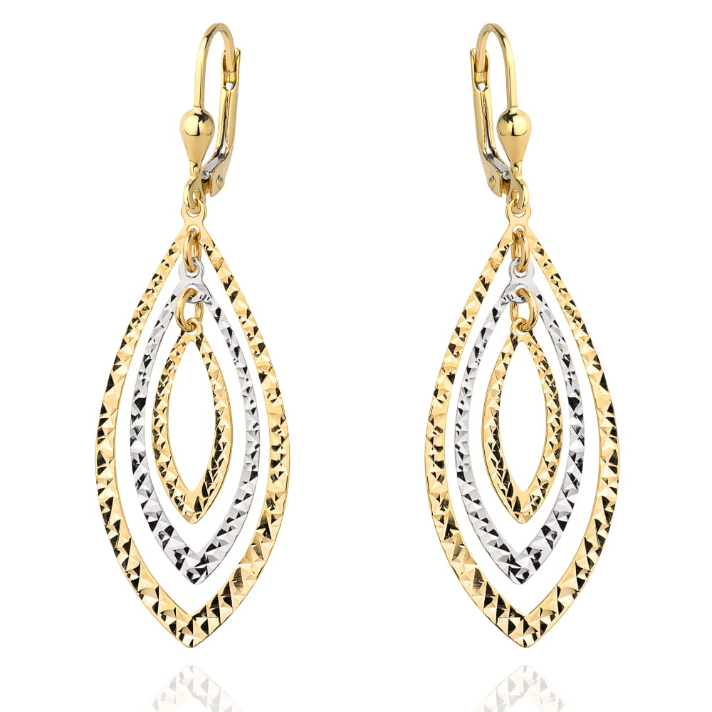 Cercei cu frunze de aur cu diamante si aur alb