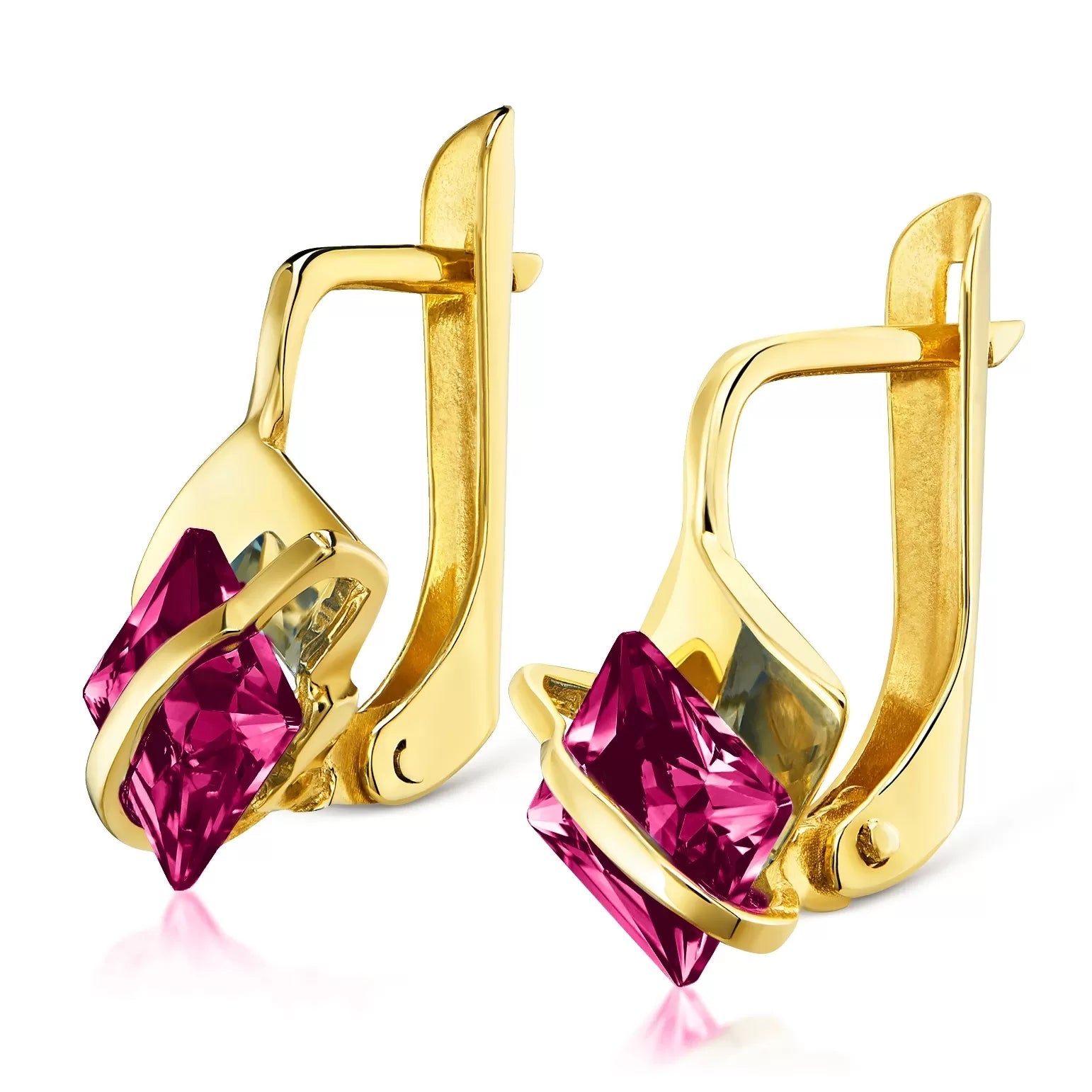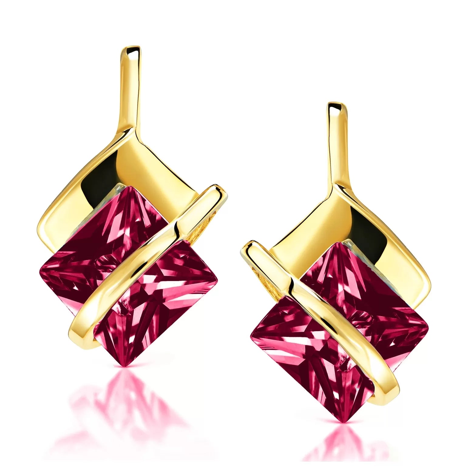 Cercei din Aur 8K cu Zirconiu Roșu, Design Elegant