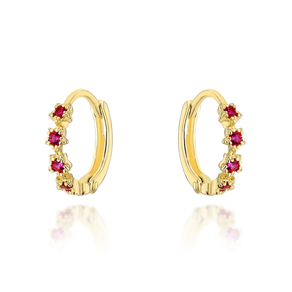 Cercei flori de aur cu zirconi fucsia pe creola