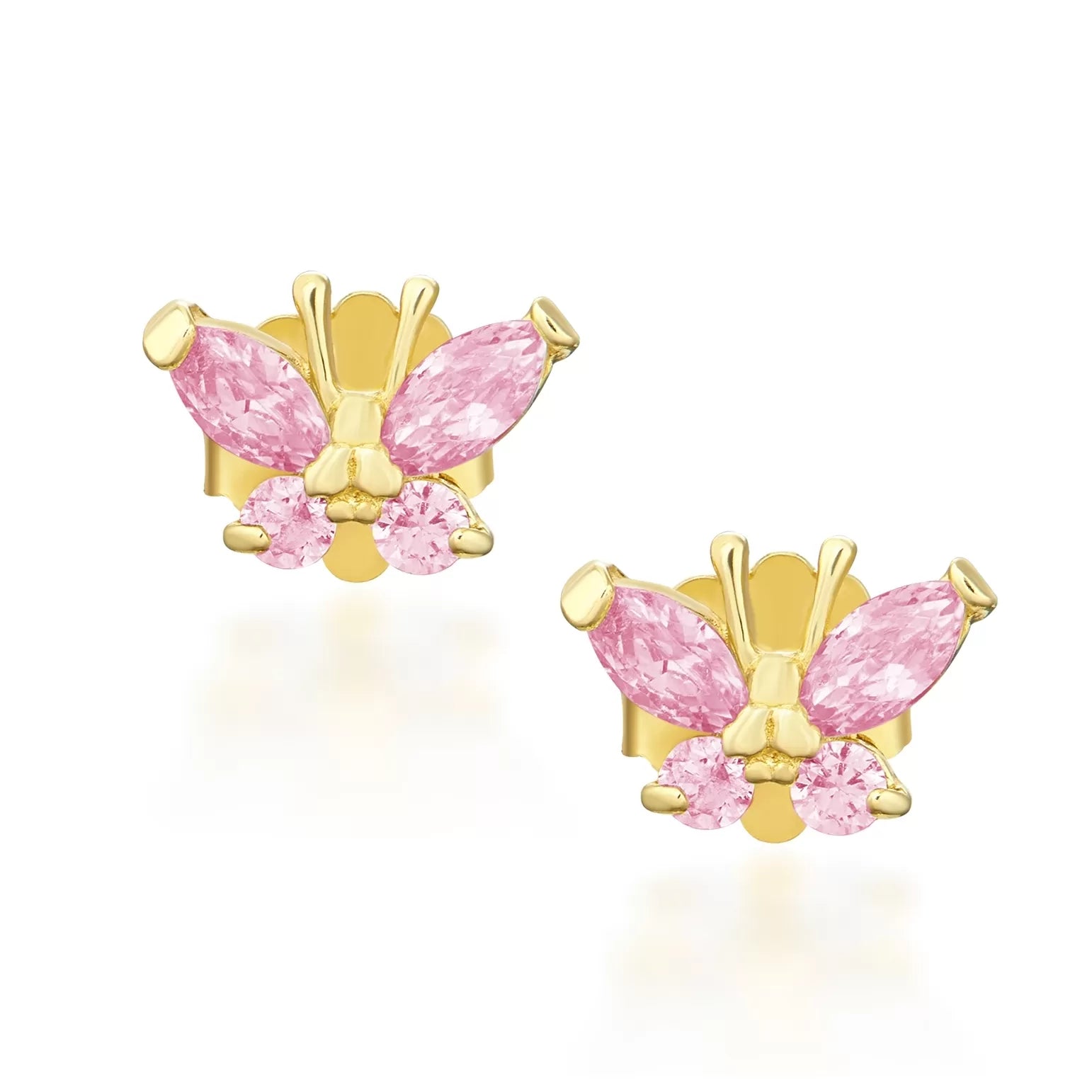 Descoperiți farmecul subtil și rafinamentul acestor cercei fluturași, realizați din aur 8K. Delicate și feminine, aceste bijuterii adaugă o notă de eleganță oricărei ținute. Strălucirea subtilă a aurului roz deschis este completată perfect de strălucirea cristalelelor de zirconiu roz, creând un joc de lumini captivant.