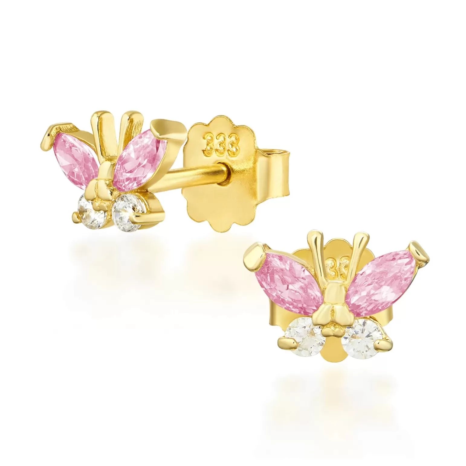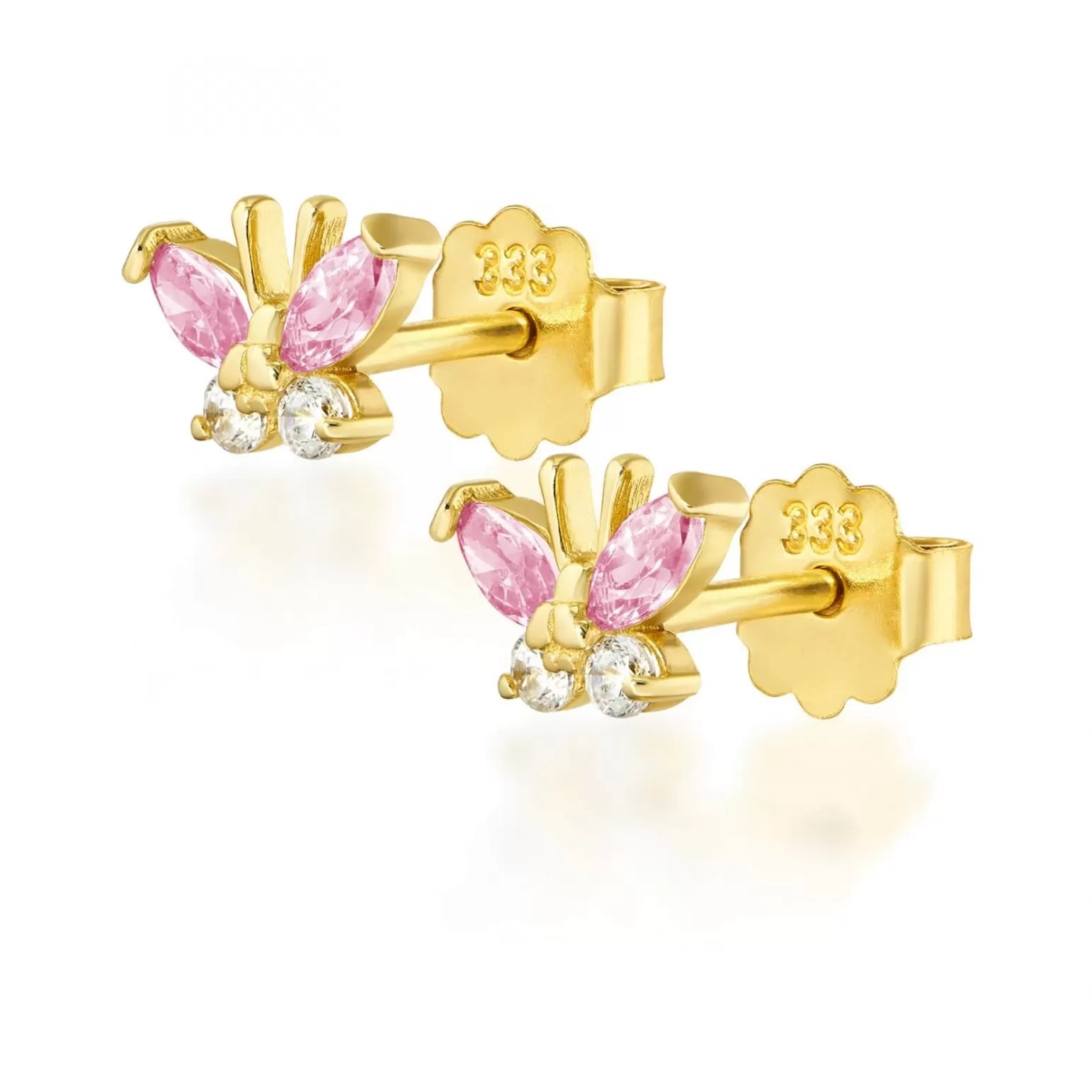 Adăugați o notă de grație și eleganță ținutei dumneavoastră cu acești încântători cercei fluturi roz, realizați din aur galben 8K. Delicatețea designului și strălucirea subtilă a zirconiei roz vor atrage privirile și vor completa perfect orice ocazie, de la o zi obișnuită la un eveniment special.