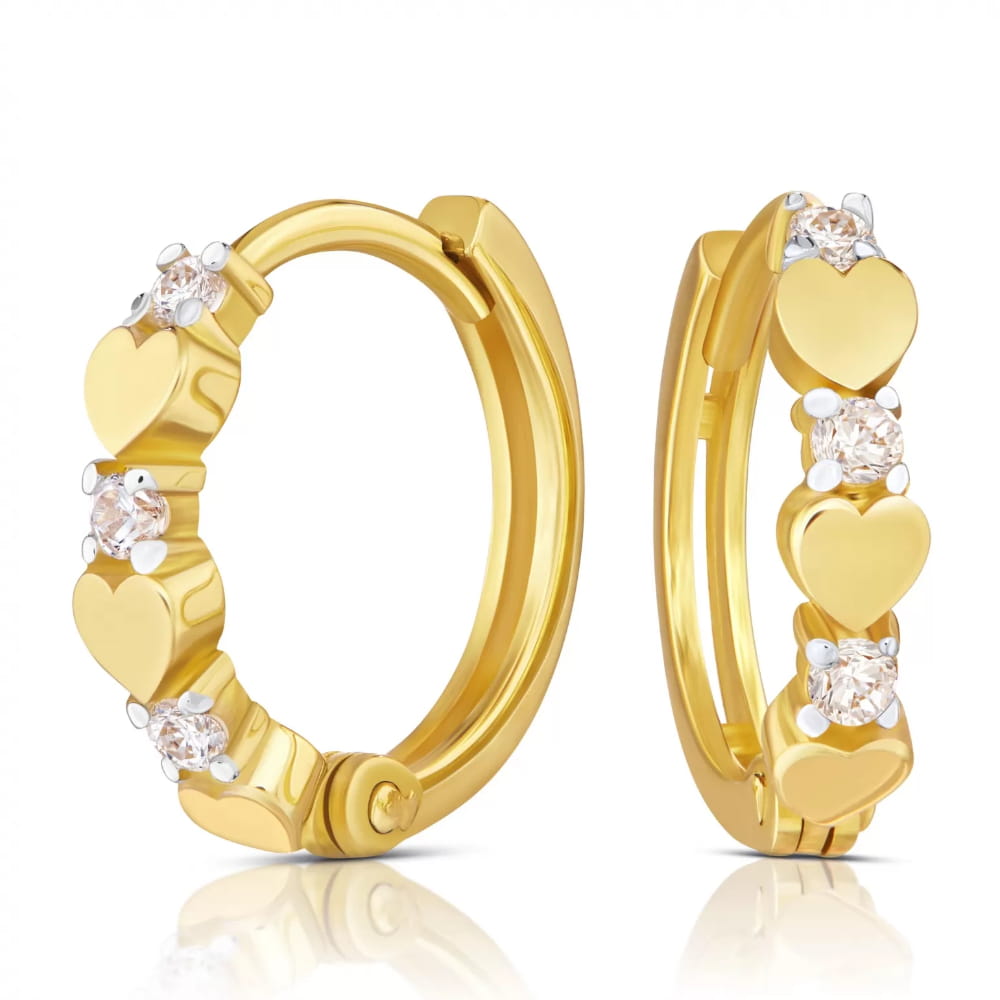 Cercei Rotunzi din Aur 8K cu Inimioare și Zirconii