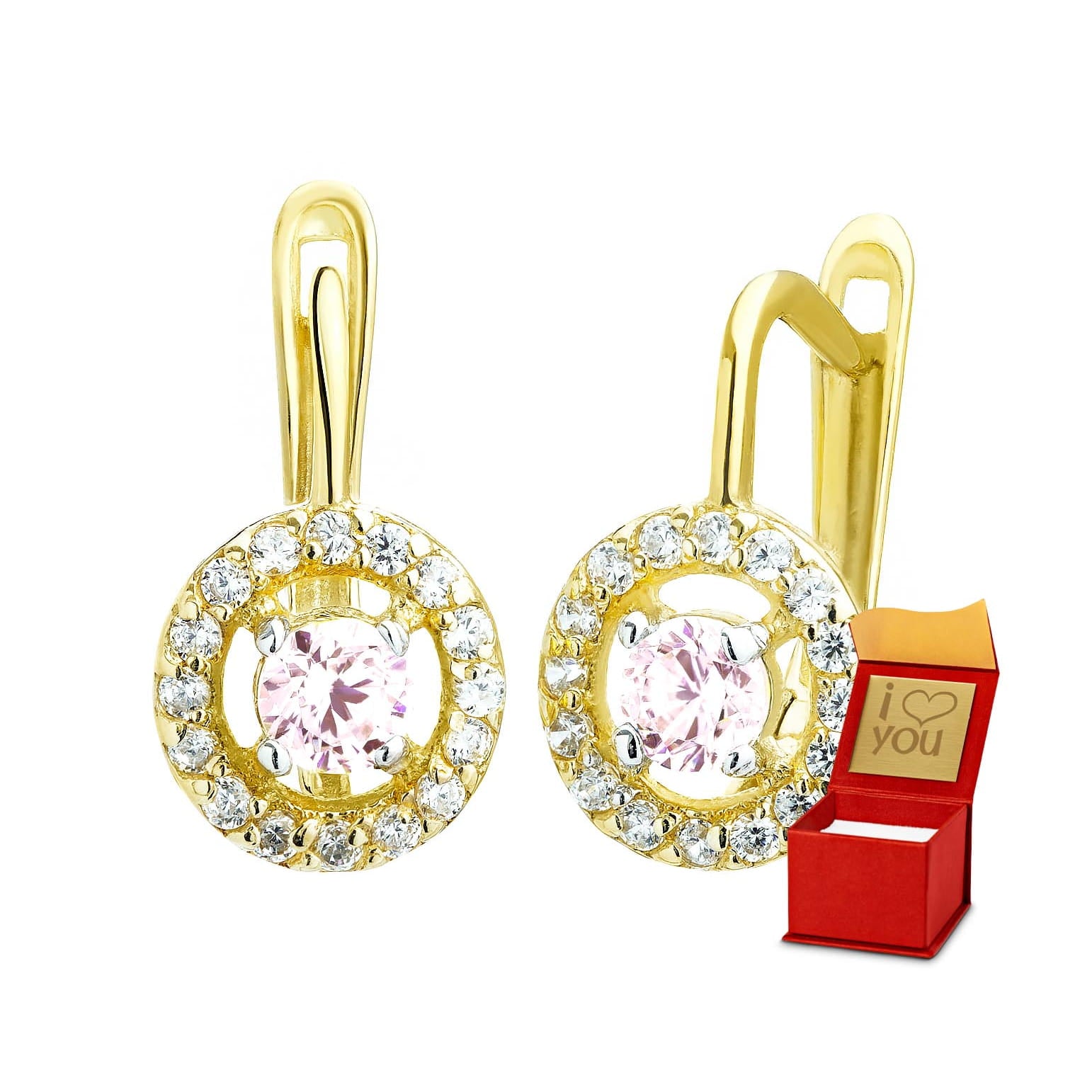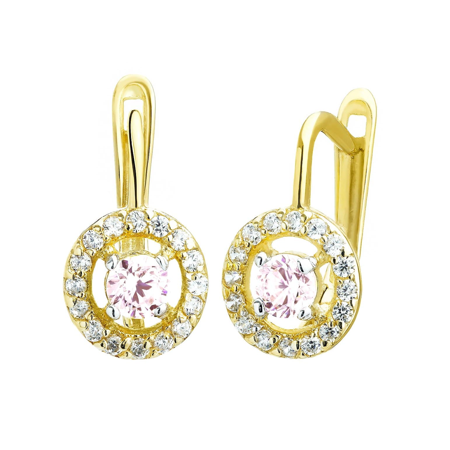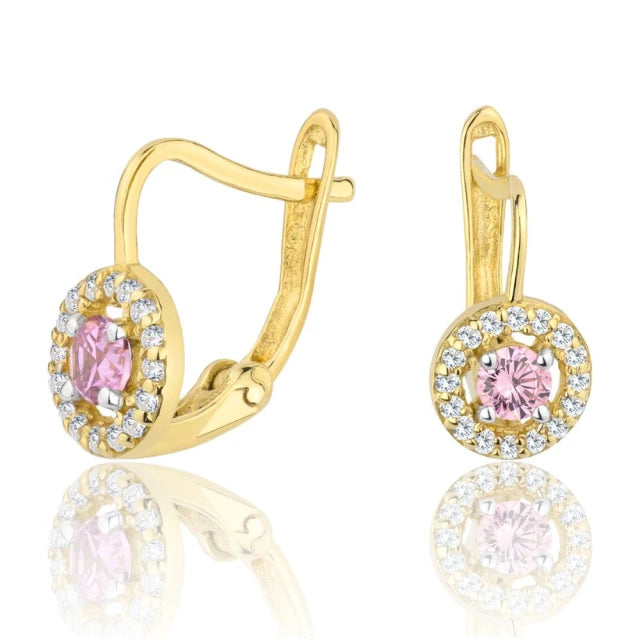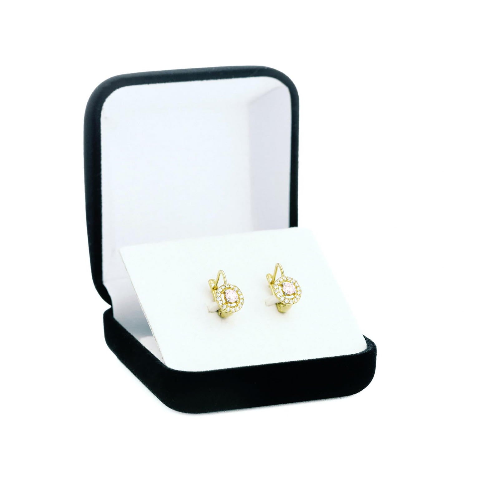 Cercei Rotunzi din Aur 8K cu Zirconii Roz