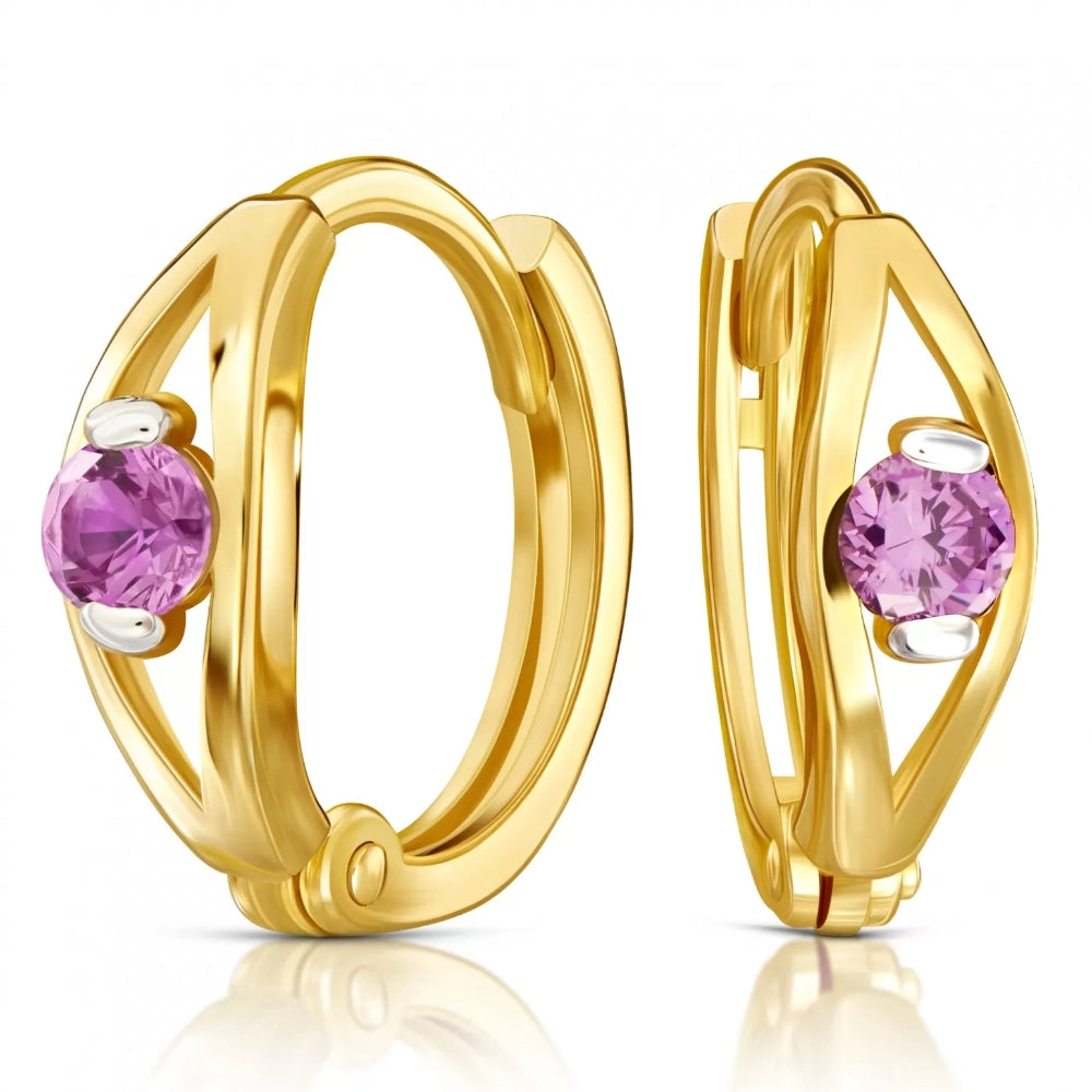 Adăugați o notă de eleganță și rafinament ținutei dumneavoastră cu acești cercei rotunzi din aur 8K, decorați cu un zirconiu violet strălucitor. Culoarea vibrantă a pietrei prețioase contrastează frumos cu aurul galben cald, creând o bijuterie cu adevărat specială.