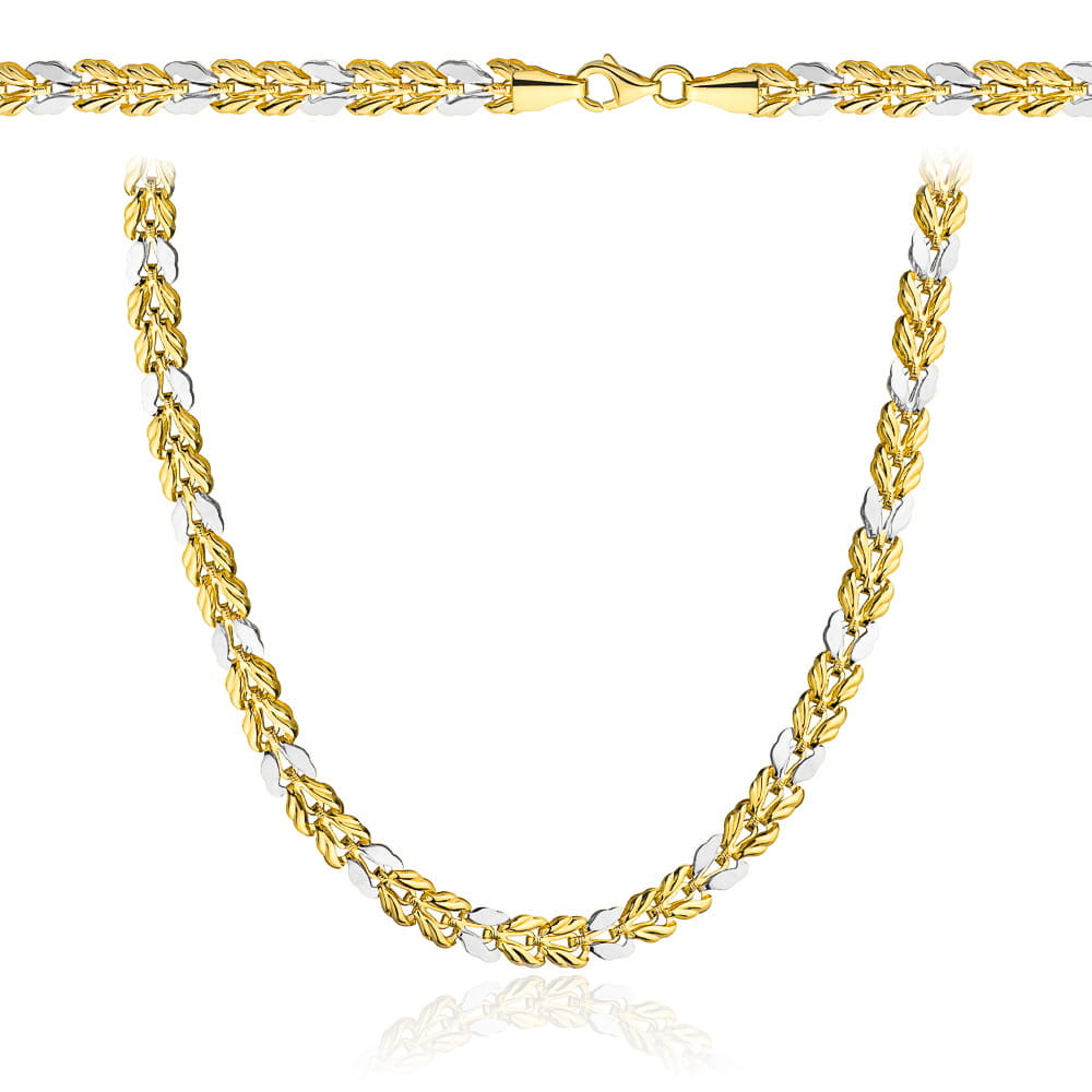 Acest colier aur, împletit cu măiestrie în două nuanțe de aur, este o bijuterie rafinată ce adaugă o notă de lux oricărei ținute. Designul său unic și delicat, combinat cu strălucirea aurului de 14K, creează o piesă de rezistență care va atrage toate privirile. Lungimea de 45cm îl face perfect pentru a fi purtat atât la evenimente speciale, cât și în viața de zi cu zi, conferindu-ți un aer sofisticat și elegant.
