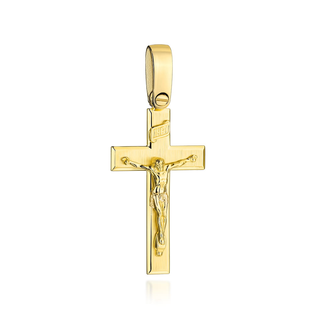 Un simbol al credinței, o bijuterie de preț: Cruce din Aur Galben Satynowat cu Iisus