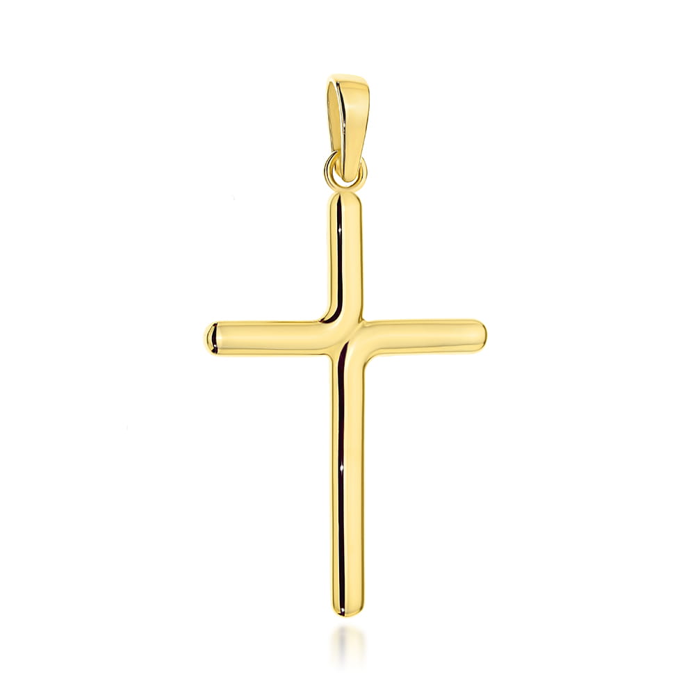 Această cruciuliță delicată, rotunjită, din aur galben de 14K (585), este o bijuterie prețioasă, perfectă pentru a marca un moment special din viață, fie că este vorba de un botez, o primă comuniune, o confirmare sau o aniversare importantă. Simplitatea designului său neted și strălucirea aurului galben creează o piesă elegantă și atemporală, ce poate fi purtată cu orice ocazie.