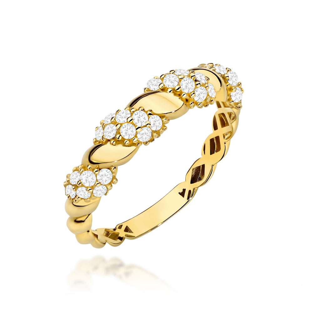 Acest inel superb este lucrat cu migală din aur de 14K, evidențiind un design împletit, decorat cu zirconii strălucitoare. Un cadou perfect pentru a celebra momente speciale.