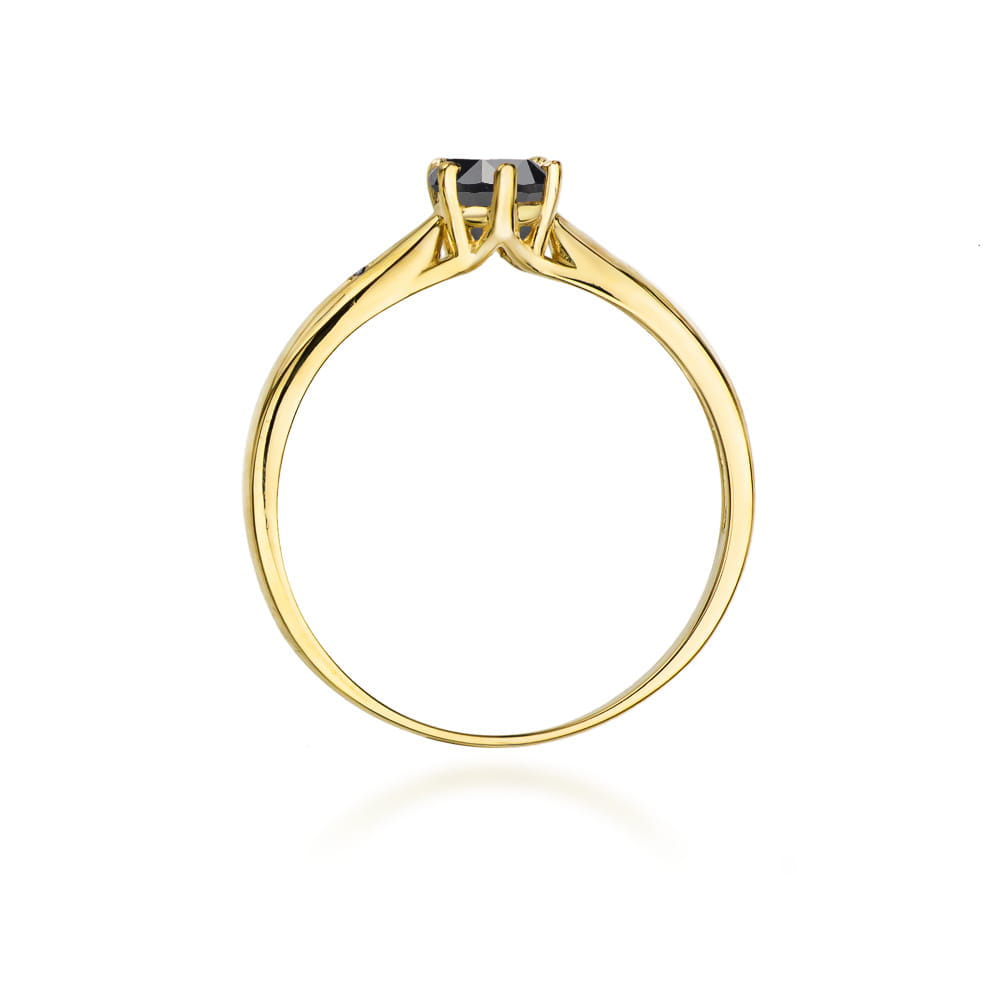 Acest inel elegant prezintă un diamant negru central impresionant de 0,50 carate, înconjurat de detalii subtile. Realizat din aur galben 14K, acest inel emană un stil atemporal și sofisticat.