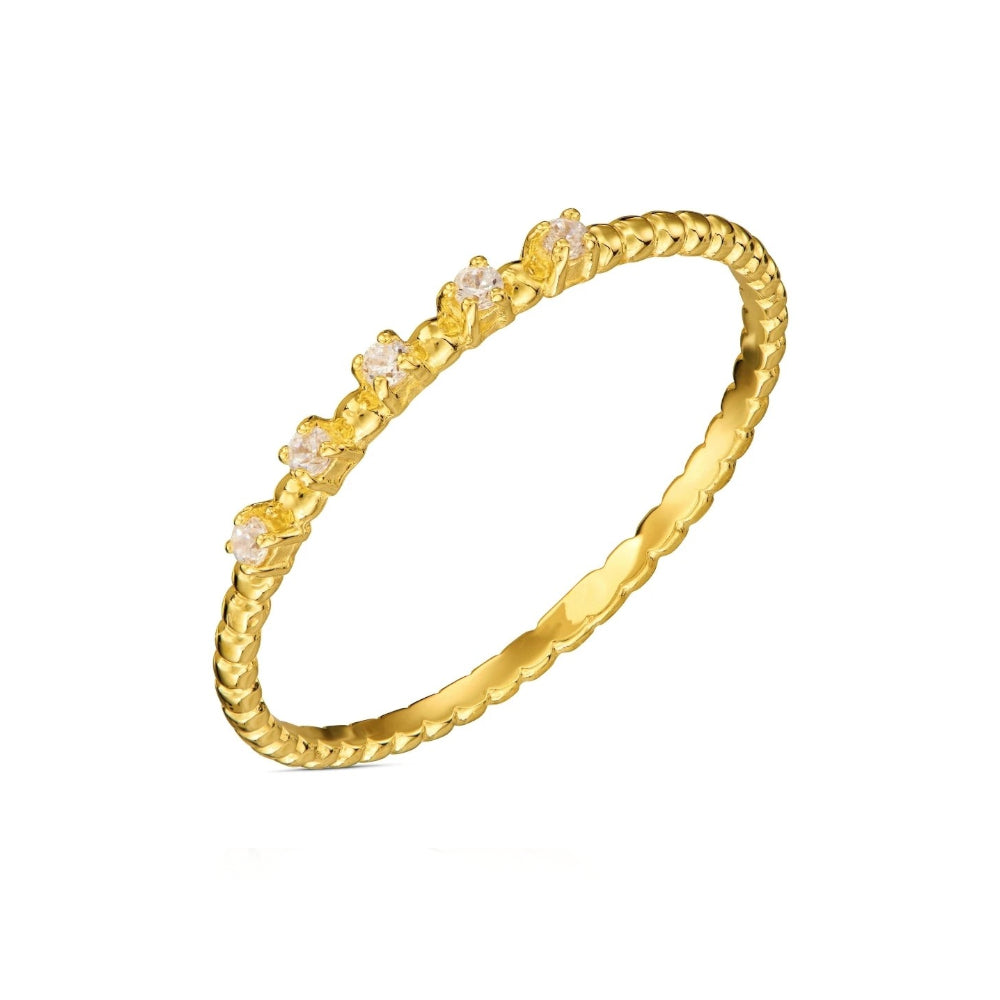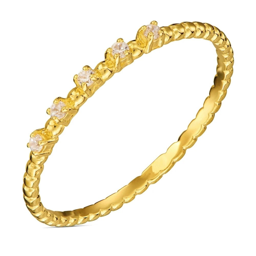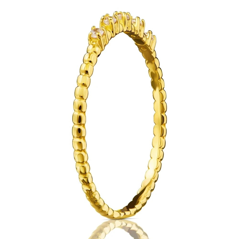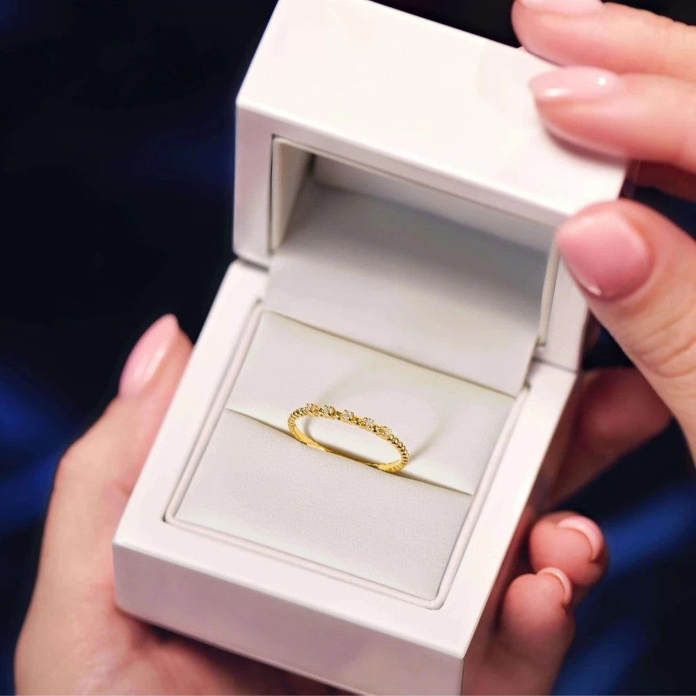 Acest inel este mai mult decât un simplu accesoriu; este o declarație de stil și eleganță. Zirconiile albe, strălucitoare, adaugă o notă de glamour discret, transformând inelul într-o piesă versatilă, perfectă pentru a completa orice ținută, de la casual la evenimente speciale. Aurul 8K garantează durabilitate și o strălucire de lungă durată. Este cadoul perfect pentru o persoană dragă sau o modalitate de a-ți răsfăța propria eleganță.