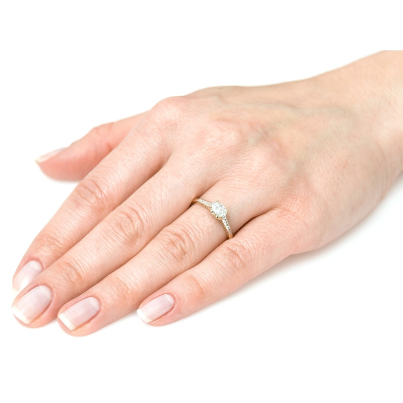 Acest inel este o expresie a eleganței și a rafinamentului. Designul său ajurat, atent lucrat, atrage atenția și adaugă o notă de mister. Piatra centrală, de formă ovală, este superb evidențiată, sporind atractivitatea bijuteriei.