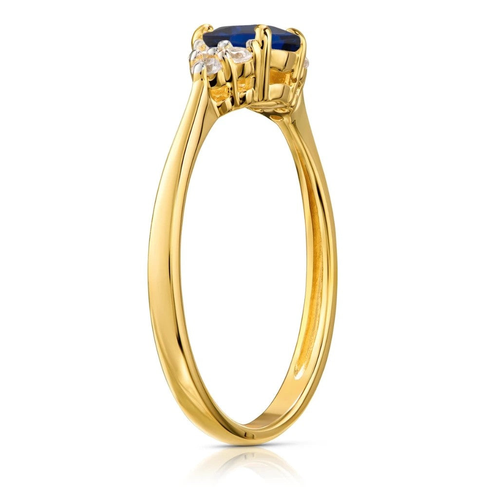Acest inel încântător este realizat din aur 8K, îmbinând perfect calitatea și stilul. Greutatea sa este de aproximativ 1.55 - 1.85g, oferind o senzație delicată pe deget. Piatra centrală, o zirconie cubică de culoare albastră, adaugă un strop de culoare și strălucire, captând atenția cu fiecare mișcare.