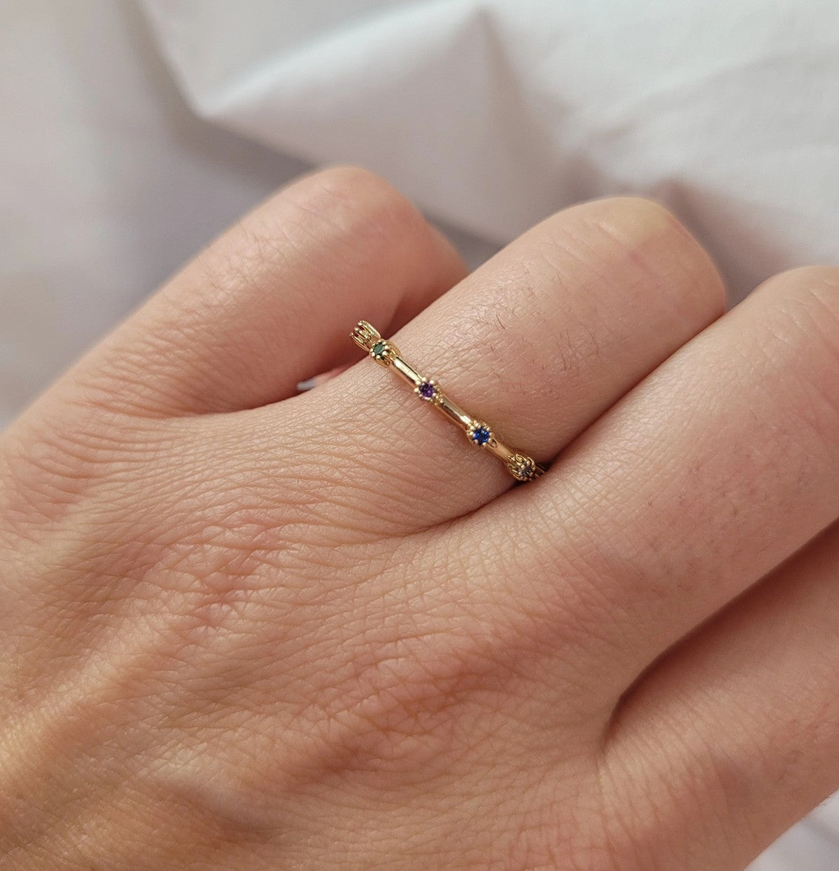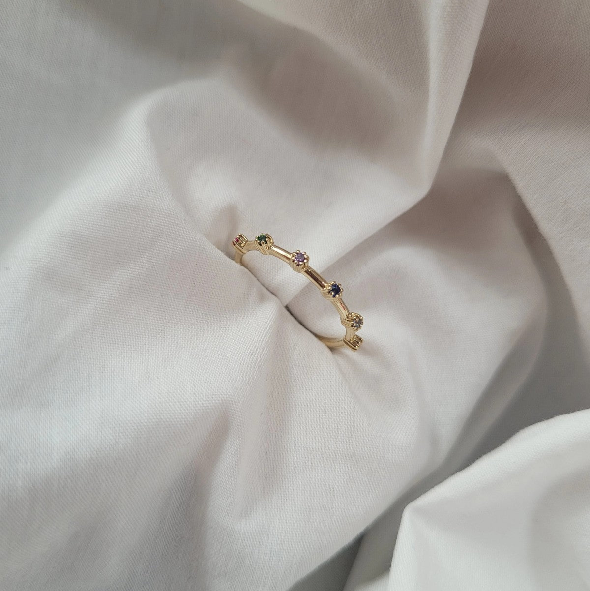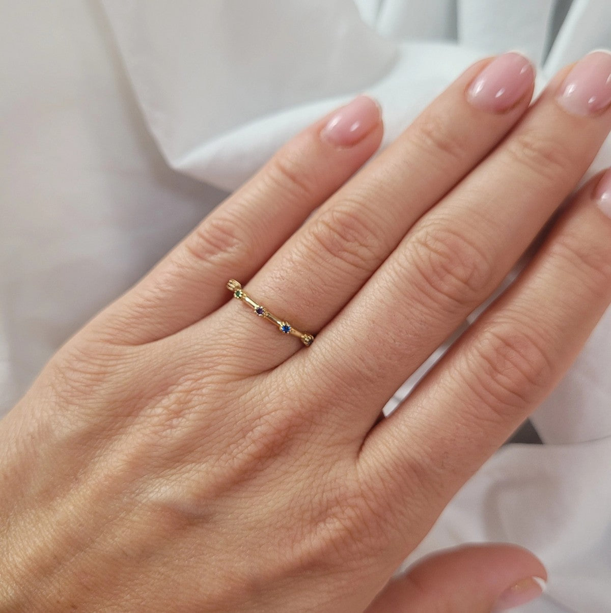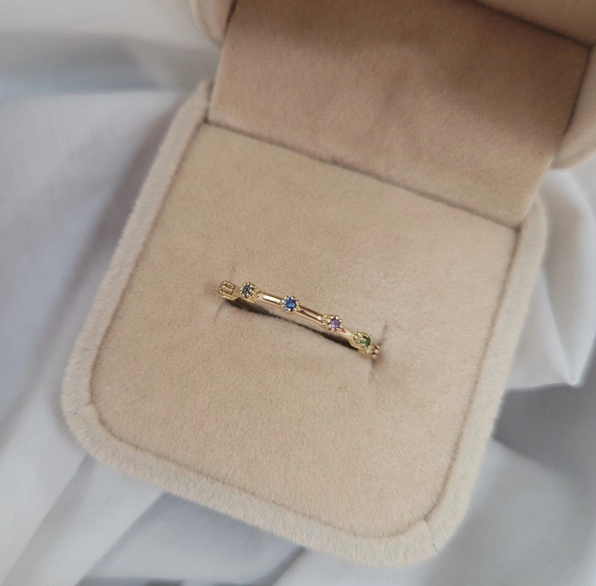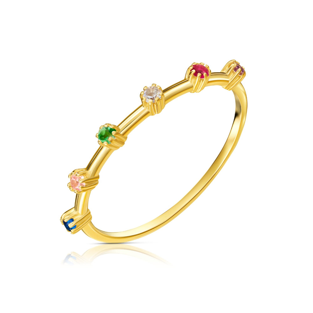 Acest inel nu este doar un accesoriu, ci o declarație de stil. Pietrele colorate adaugă o notă de vivacitate și bucurie, transformând fiecare zi într-o sărbătoare. Aurul 8K conferă o strălucire subtilă, perfectă pentru a completa orice ținută, de la cele casual la cele elegante. Este cadoul ideal pentru cineva drag sau un răsfăț pentru tine, simbolizând iubirea și aprecierea.