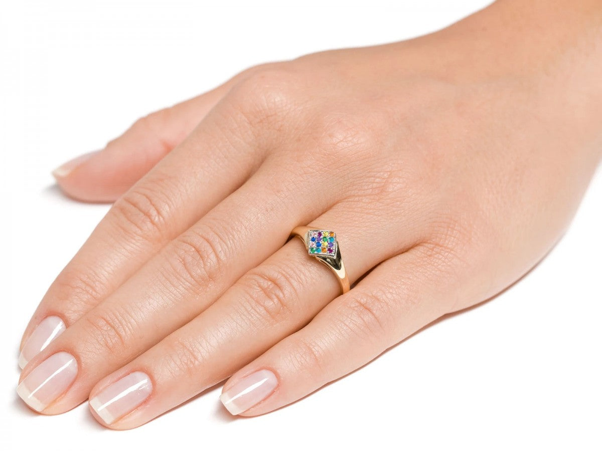 Acest inel nu este doar un accesoriu, ci o extensie a personalității tale. Pietrele colorate, montate cu precizie, capturează lumina într-un mod spectaculos, atrăgând privirile și amplificând frumusețea naturală. Aurul 8K adaugă o notă de lux și durabilitate, asigurând o bijuterie care va rezista testului timpului. Este alegerea perfectă pentru a celebra momente speciale sau pentru a-ți exprima eleganța cotidiană.