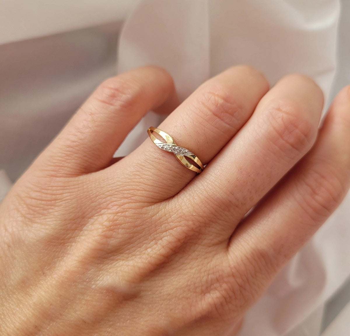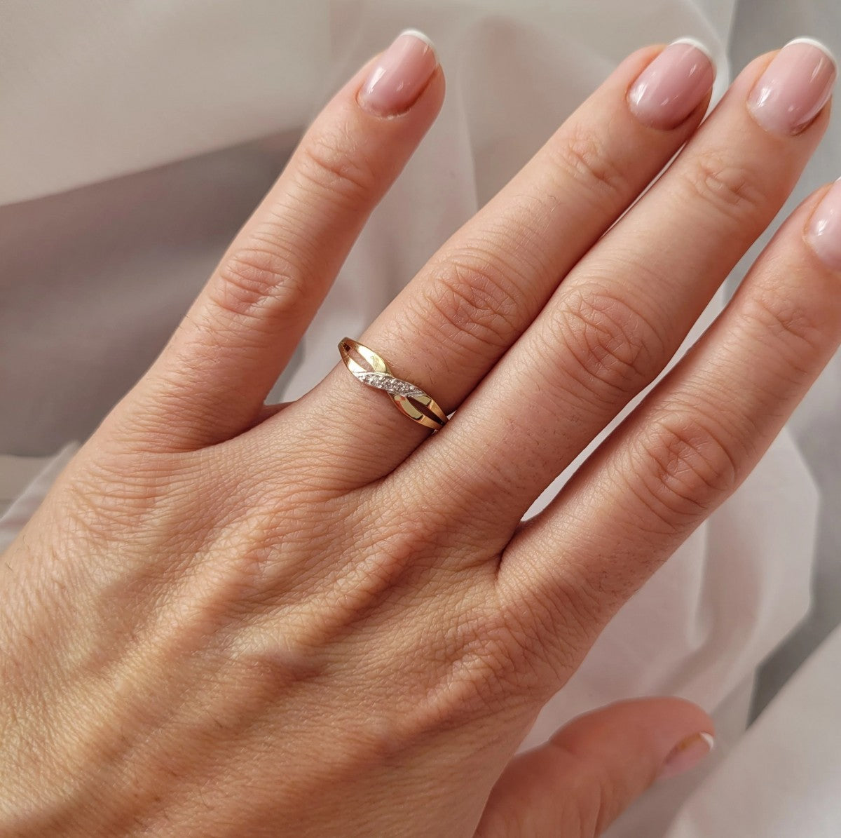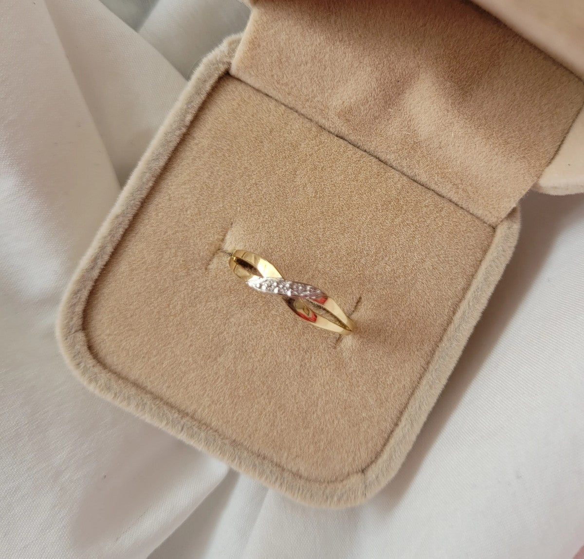 Descoperă eleganța atemporală a acestui inel din aur, o bijuterie rafinată, creată pentru a celebra frumusețea și stilul personal. Designul său împletit, îmbogățit cu pietre strălucitoare, emană o aură de sofisticare și mister.
