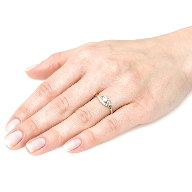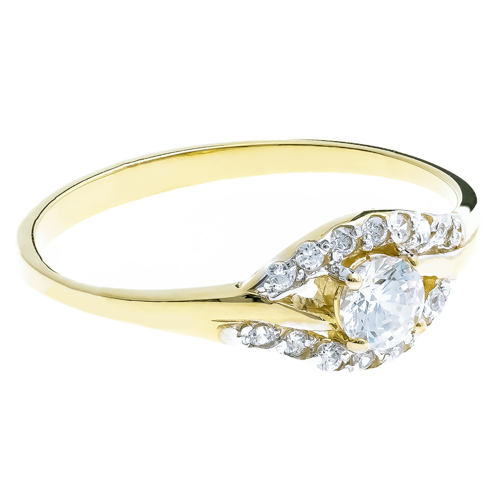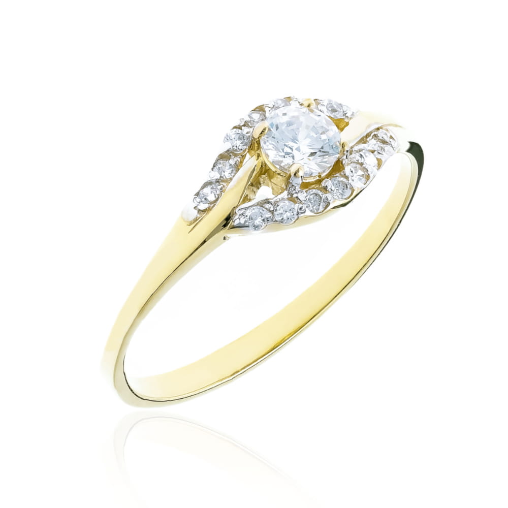 Descoperă eleganța atemporală a acestui inel din aur, o bijuterie rafinată, perfectă pentru a completa orice ținută. Designul său delicat, împodobit cu zirconii strălucitoare, emană feminitate și farmec, atrăgând privirile și subliniind stilul personal.