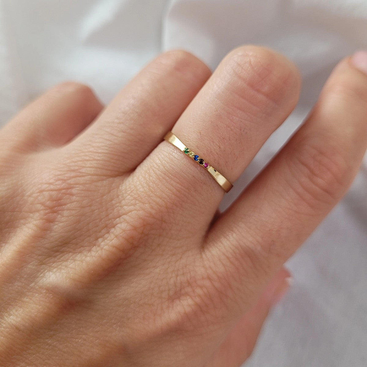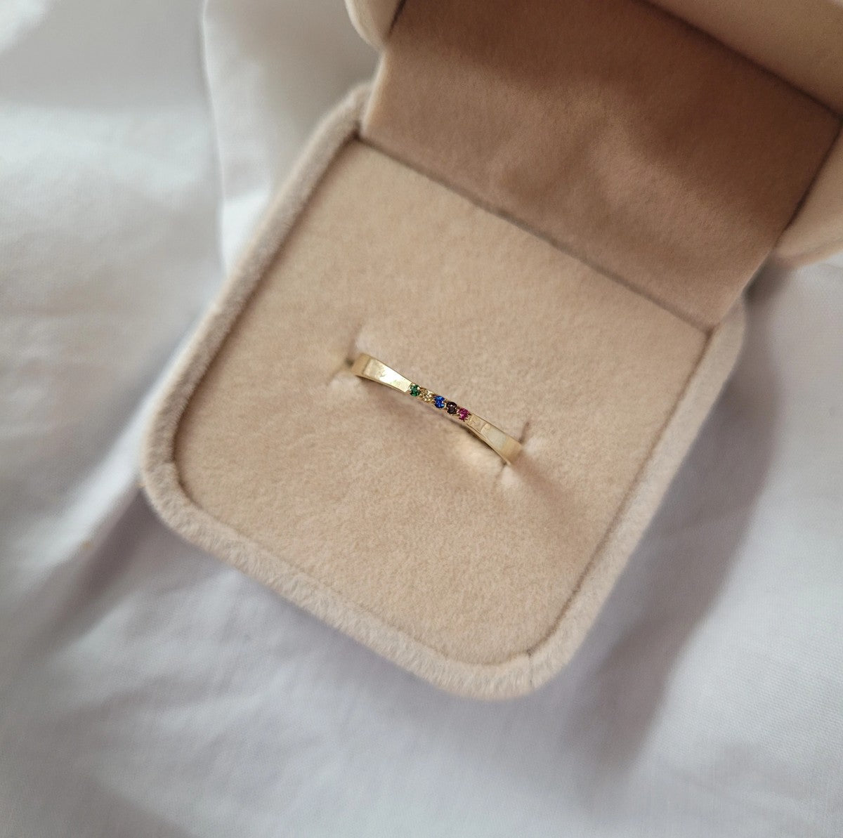 Acest inel este mai mult decât o simplă bijuterie; este o declarație de stil. Zirconiile colorate adaugă o notă de veselie și originalitate, în timp ce aurul 8K conferă o eleganță atemporală. Fie că este purtat singur sau alături de alte bijuterii, acest inel va atrage privirile și va completa perfect orice ținută.